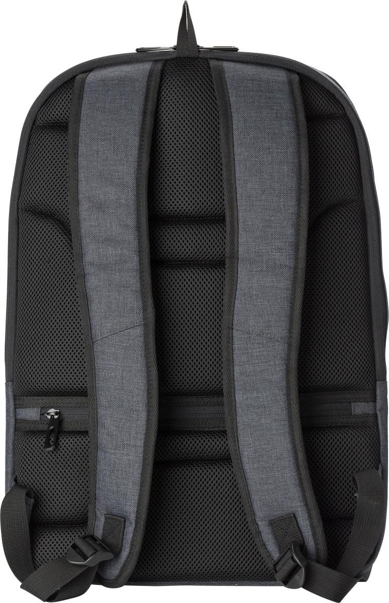 Mochila de PVC con dos compartimentos principales, uno apto para portátil de 15''. Tiene un bolsillo trasero antirrobos y dos bolsillos con cremall…