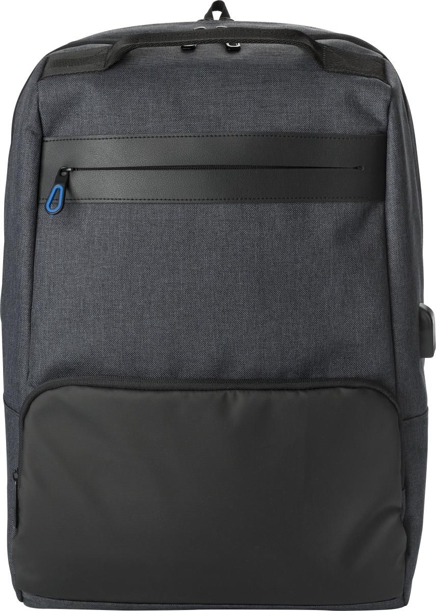 Mochila de PVC con dos compartimentos principales, uno apto para portátil de 15''. Tiene un bolsillo trasero antirrobos y dos bolsillos con cremallera en la parte frontal. Con tirantes acolchados ajustables.