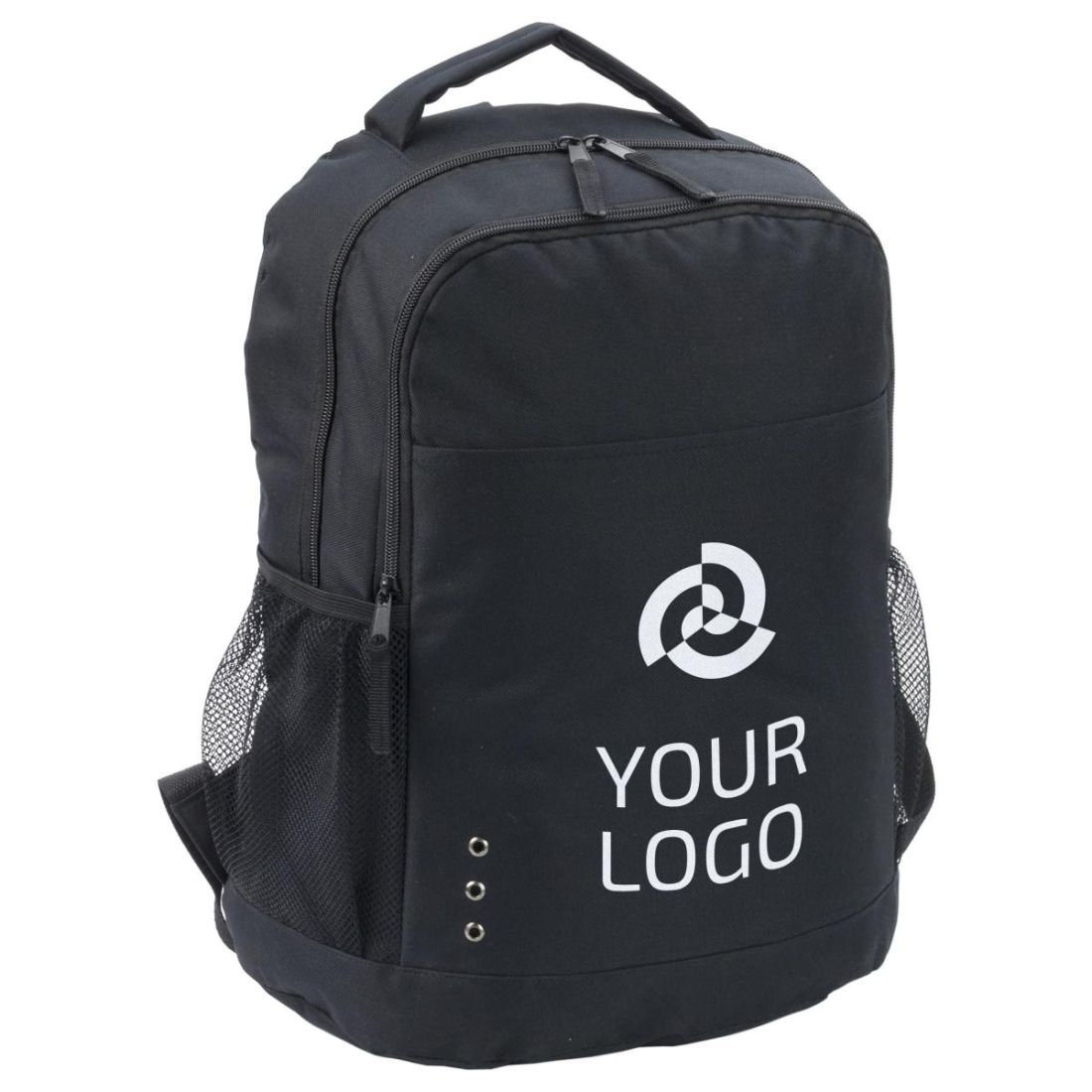 Mochila de poliéster (600 D) con dos bolsillos principales con cremallera y dos bolsillos laterales. Tirantes ajustables.