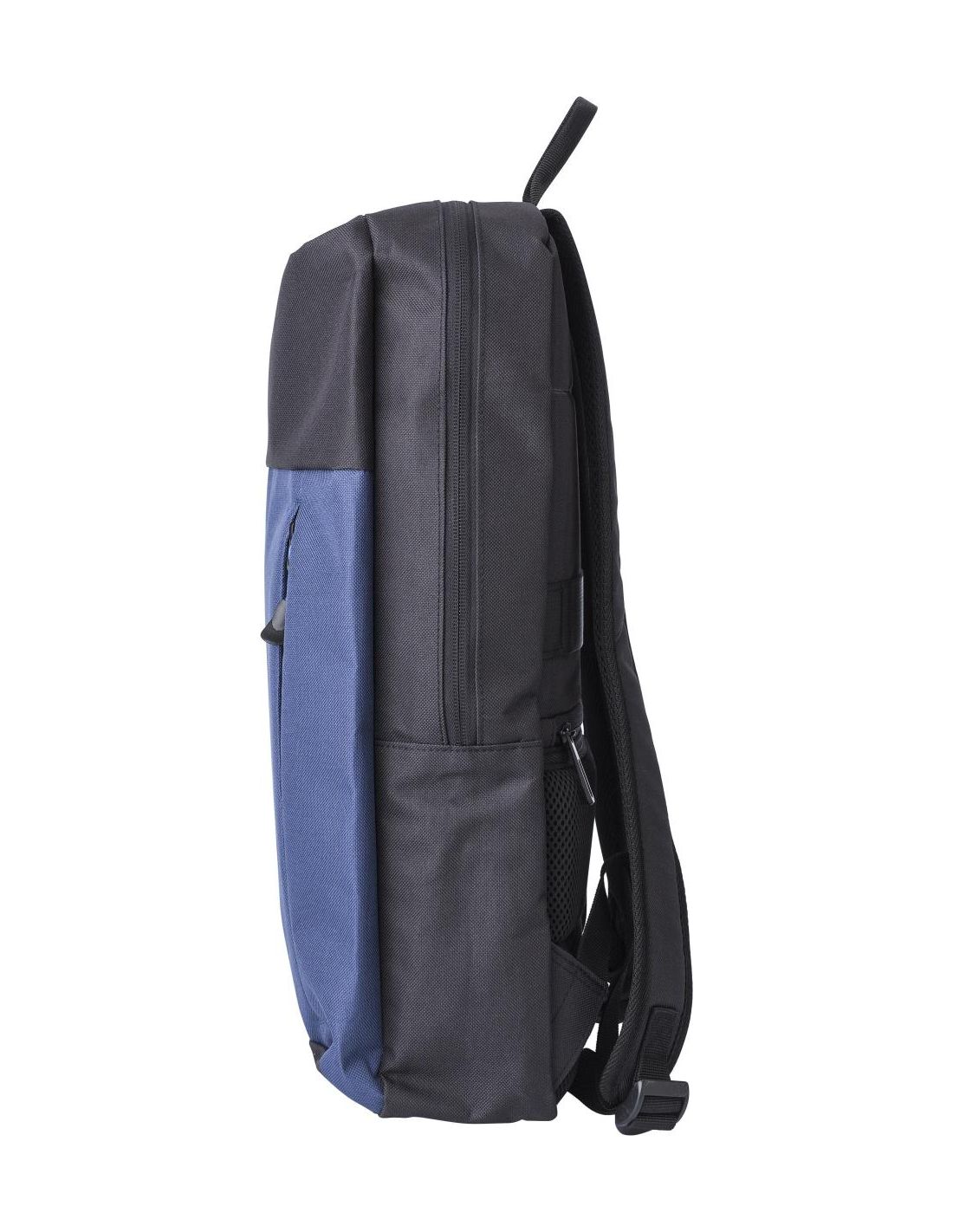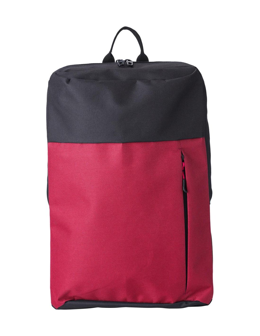 Mochila de poliéster (600 D) con un compartimento principal y un bolsillo frontal con cremallera. Tirantes ajustables y acolchados.