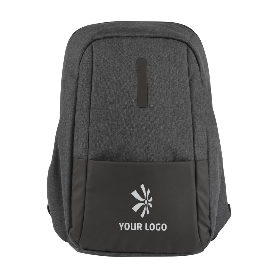 Mochila de PVC con un compartimento principal acolchado para un portátil de 15'' y bolsillos interiores. En la parte frontal tiene un bolsillo con …