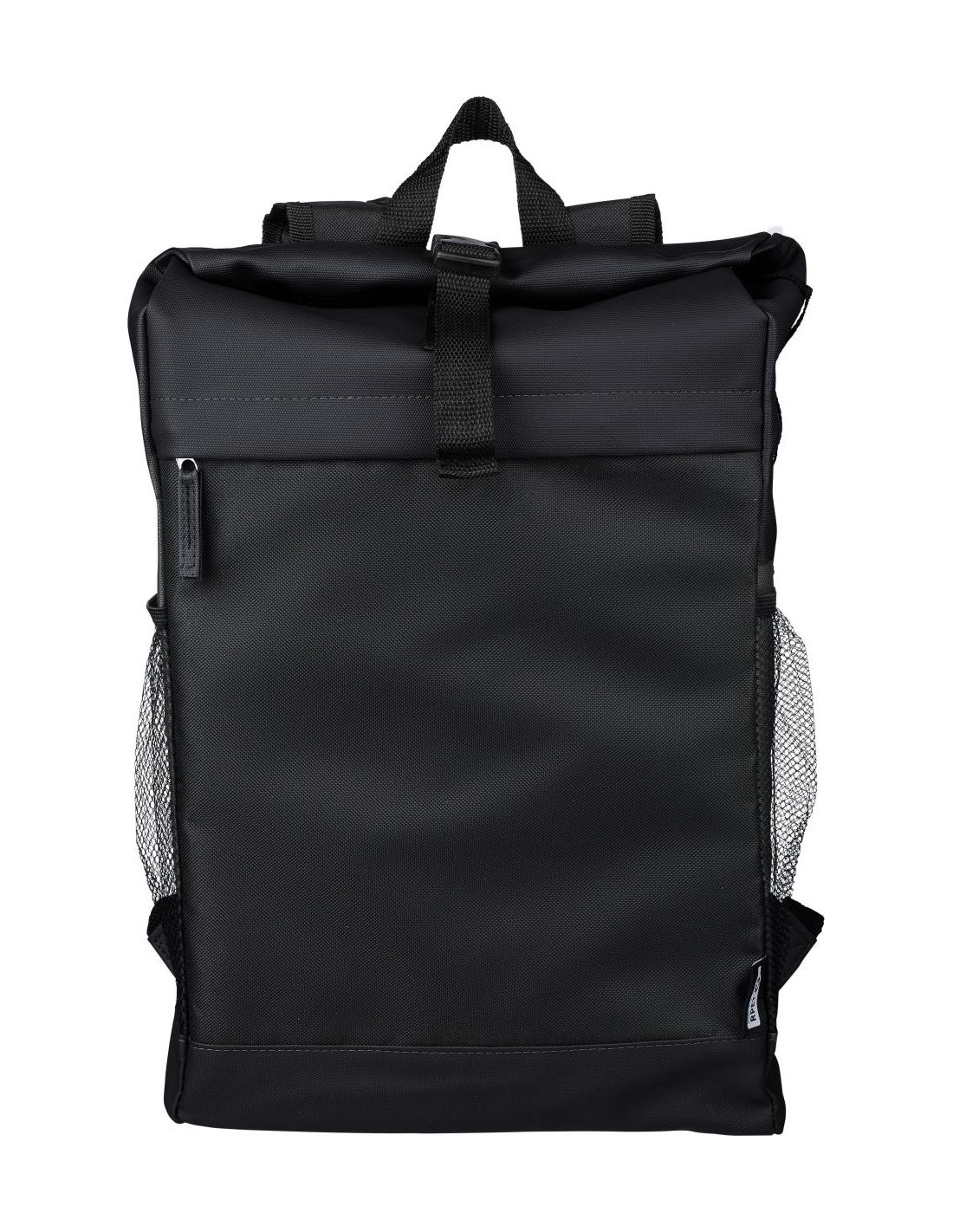 Mochila enrollable de poliéster rPET (600D) con revestimiento de PU para repeler el agua. Cuenta con un bolsillo frontal oculto con cremallera, una funda acolchada para portátil (compatible con portátiles de hasta 15 pulgadas), bolsillos laterales de malla y cinco compartimentos, incluyendo uno interior y uno frontal. Diseñada con correas de transporte ajustables y cierre adhesivo enrollable. Ofrece una capacidad de 25 litros y una capacidad de carga de 15 kg. Incluye una etiqueta de rPET en el lateral y una etiqueta personalizada en el interior.