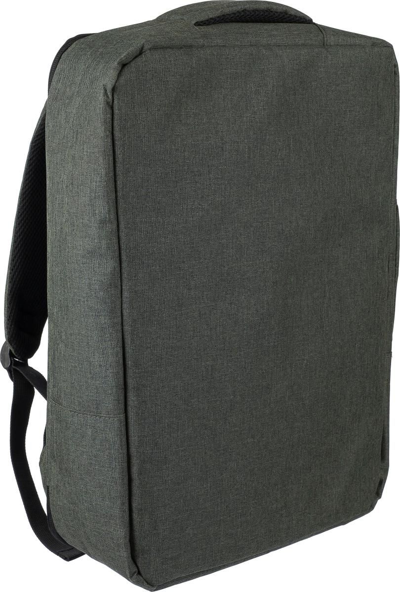 Mochila para portátil de poliéster rPET 300D con un forro de rPET 210D. Cuenta con un gran compartimento con cremallera con múltiples bolsillos insertables, un bolsillo para portátil (15’’) con cierre de velcro. y una capacidad de 12 litros. Tiene un respaldo reforzado y ventilado, tirantes ajustables, un asa lateral y una correa para acoplar al trolley. Incluye una etiqueta indicando que es material reciclado. Capacidad de carga: 10 kg.