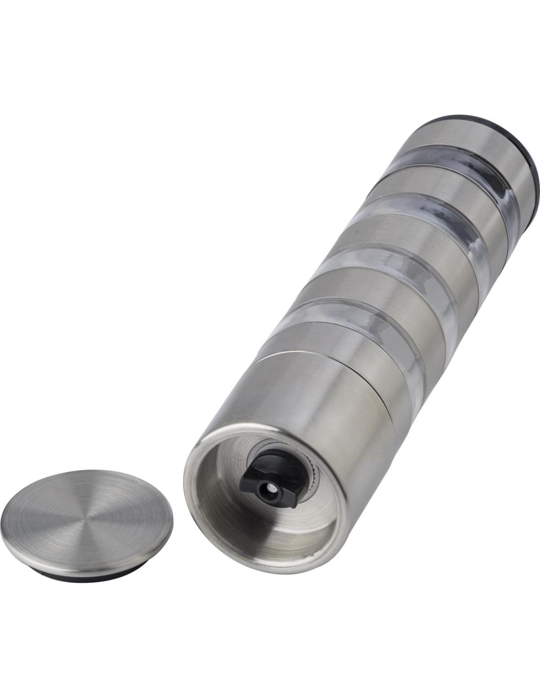 Recipiente para especias de acero inoxidable con 4 compartimentos y molinillo de cerámica. Solo necesitas enroscar arriba el contenedor con la espe…