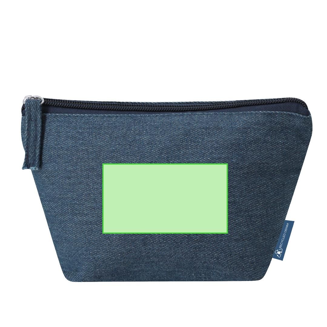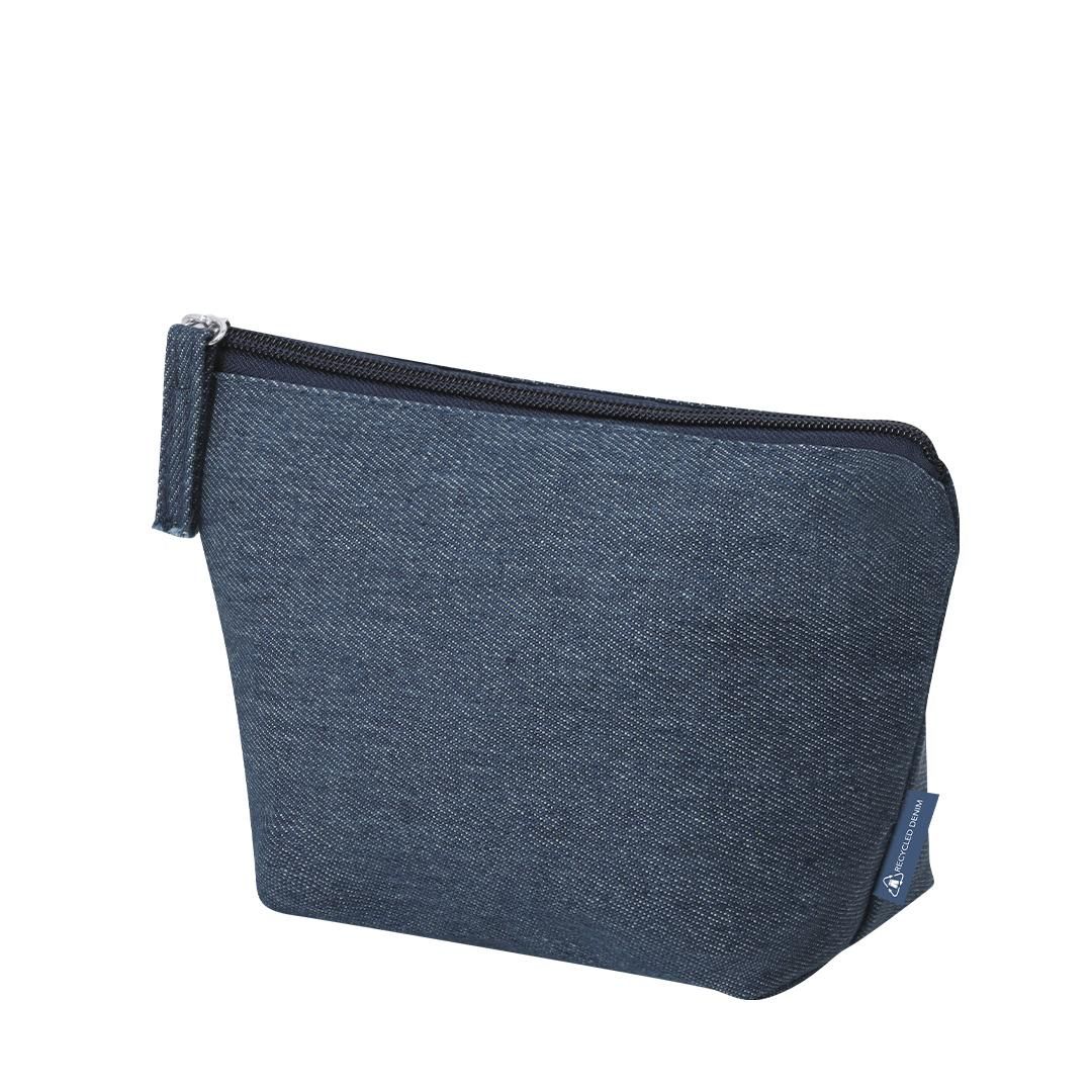 Neceser fabricado principalmente en tejido vaquero reciclado. Compartimento principal con cierre de cremallera. Incluye etiqueta exterior con logotipo tejido vaquero reciclado.