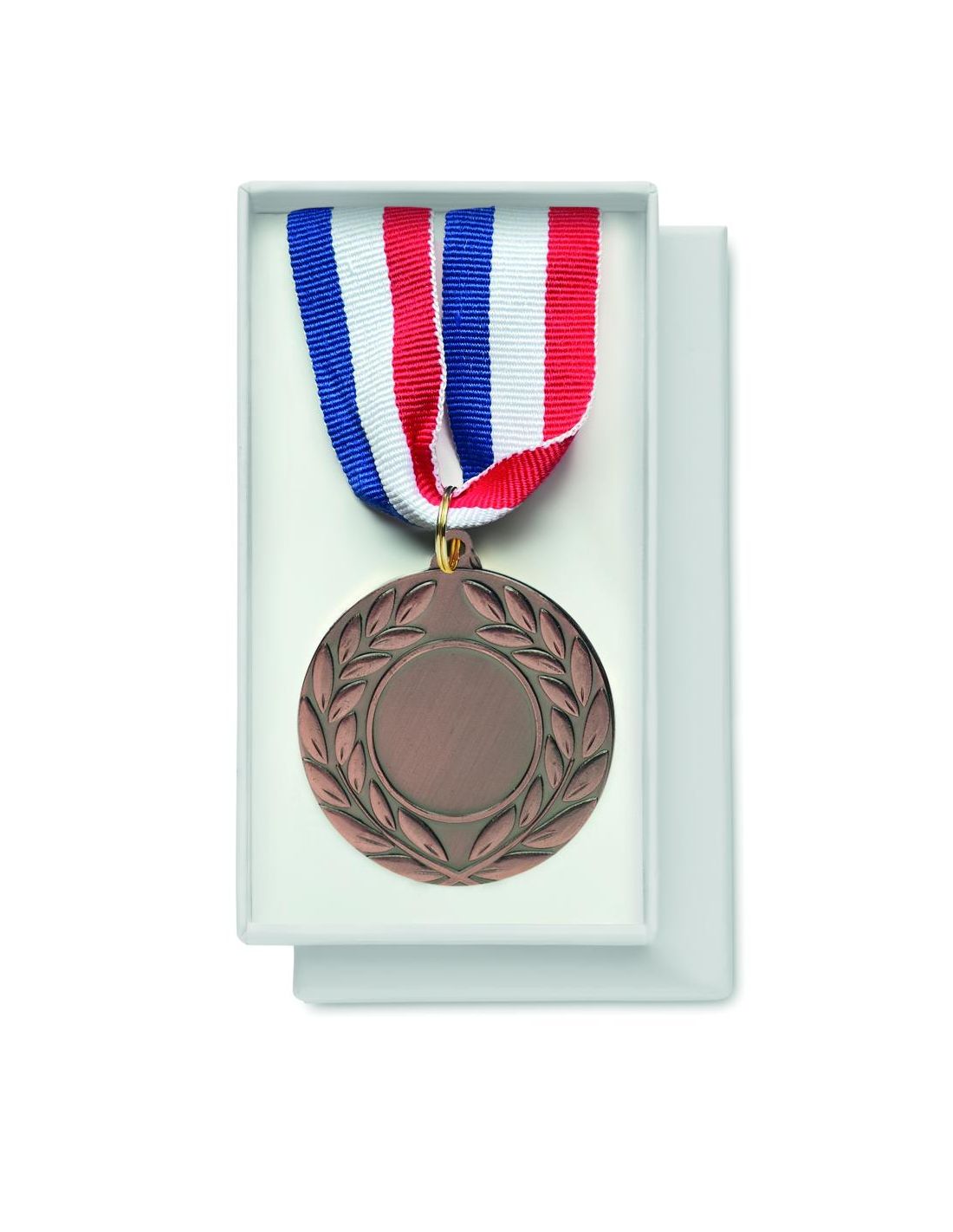 Medalla de hierro con cinta de poliéster en colores azul, blanco y rojo. 5 cm de diámetro