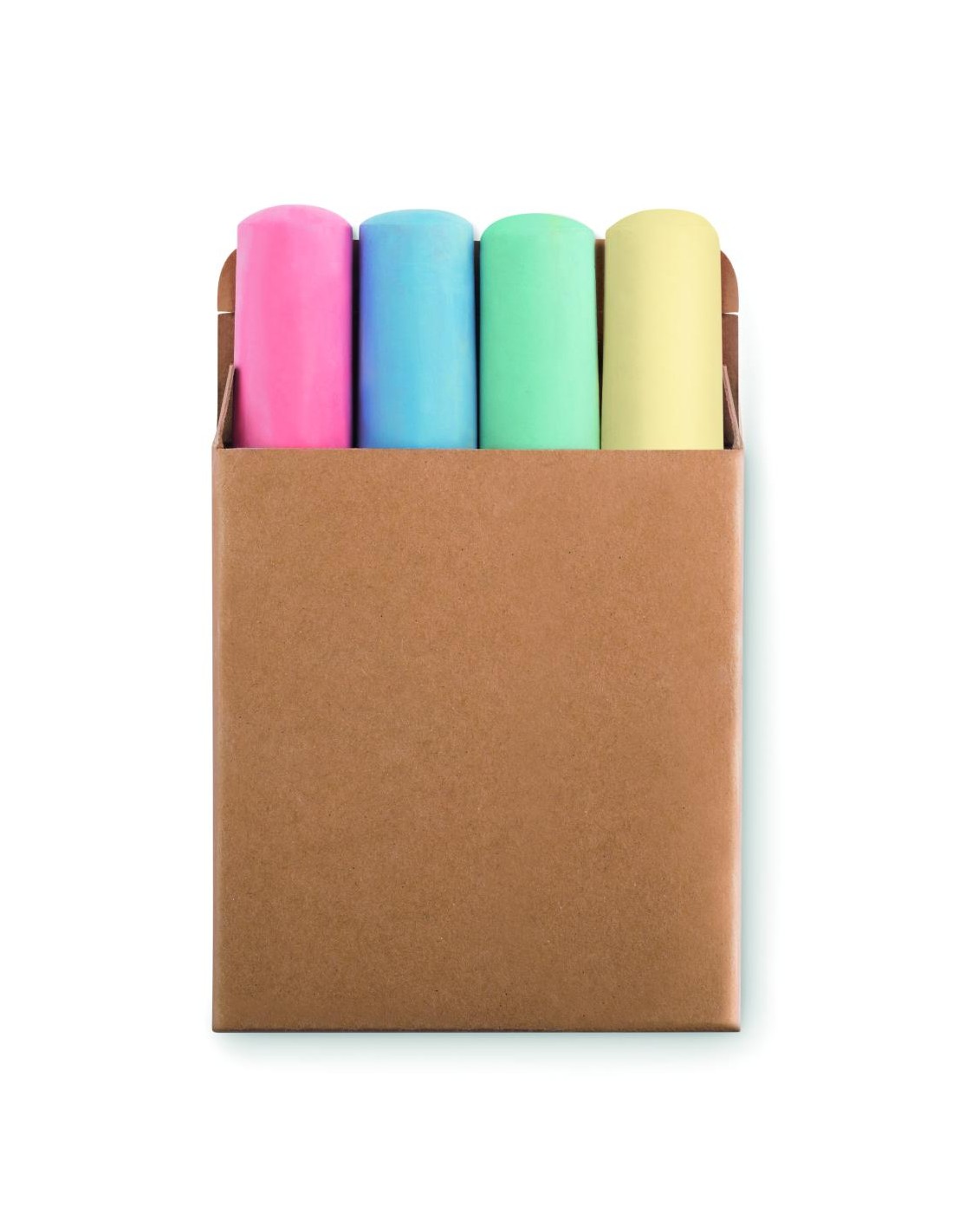 4 tizas de colores en caja de papel reciclado. 25 mm de diámetro.
