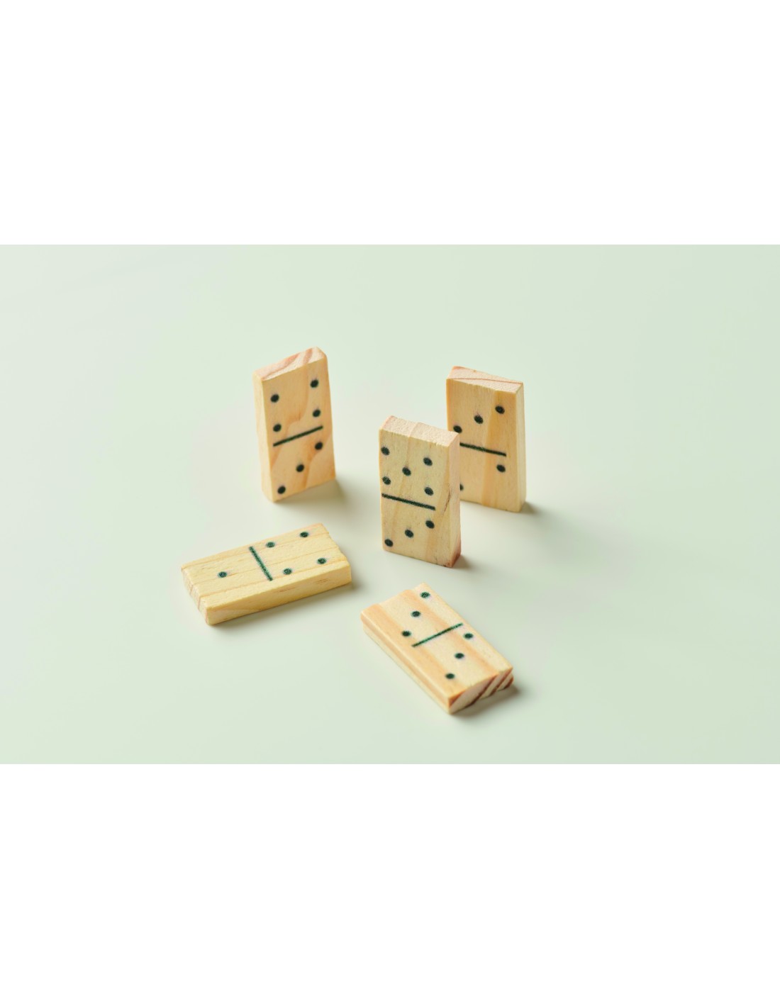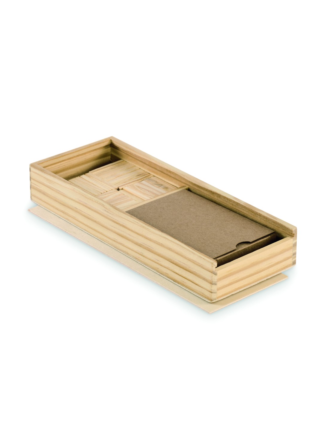 Juego de dominó de madera y cartas de papel reciclado. Presentado en caja de MDF.