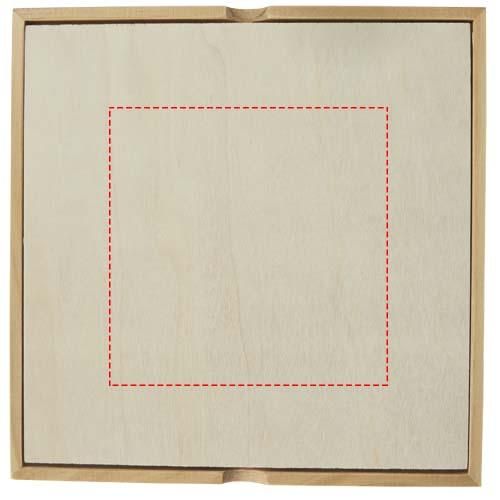 Set de juegos de madera que contiene varios juegos como: backgammon, ajedrez, damas, dominó, ludo, mikado y juegos de cartas. Una parte de la tapa es para la grabación y en la parte trasera está el...