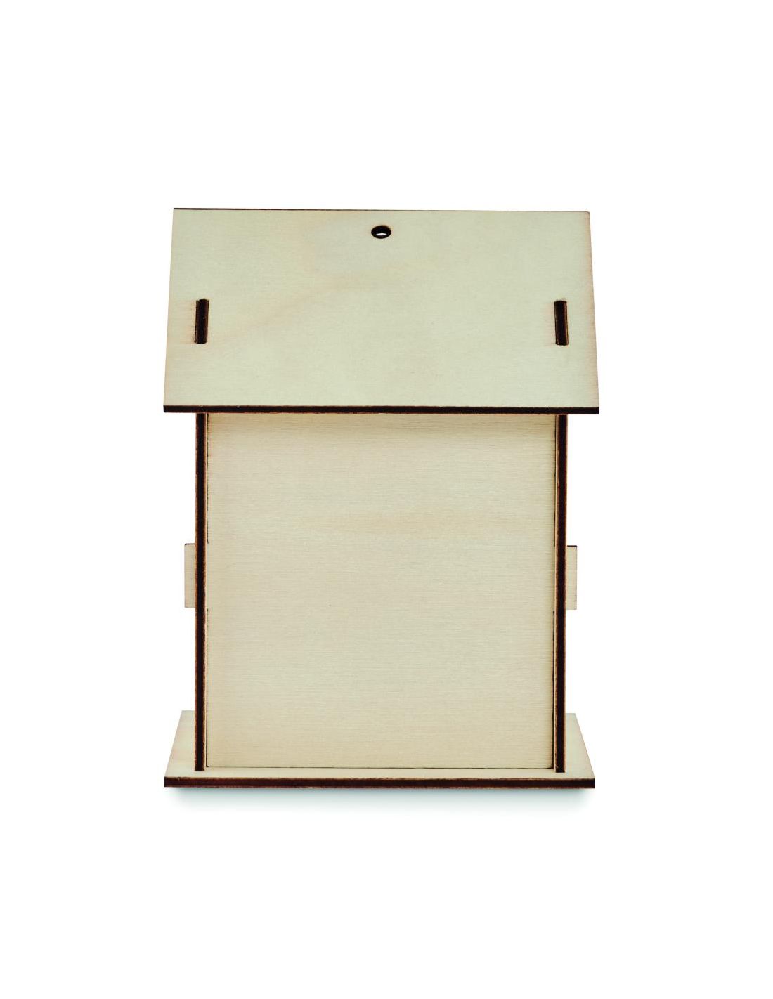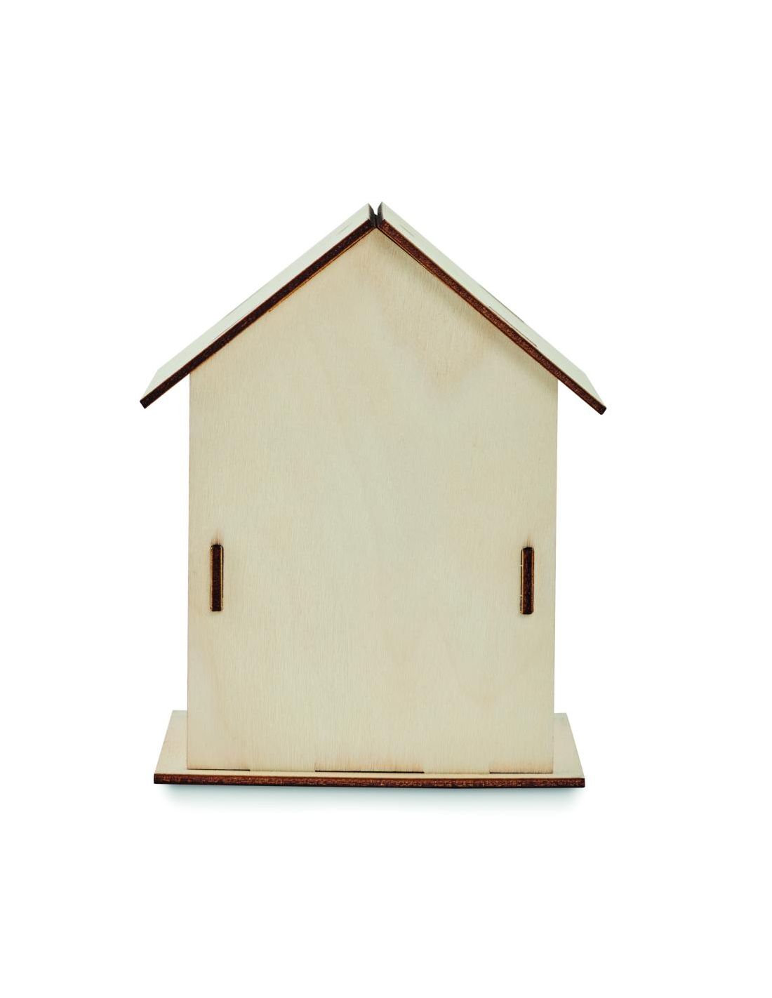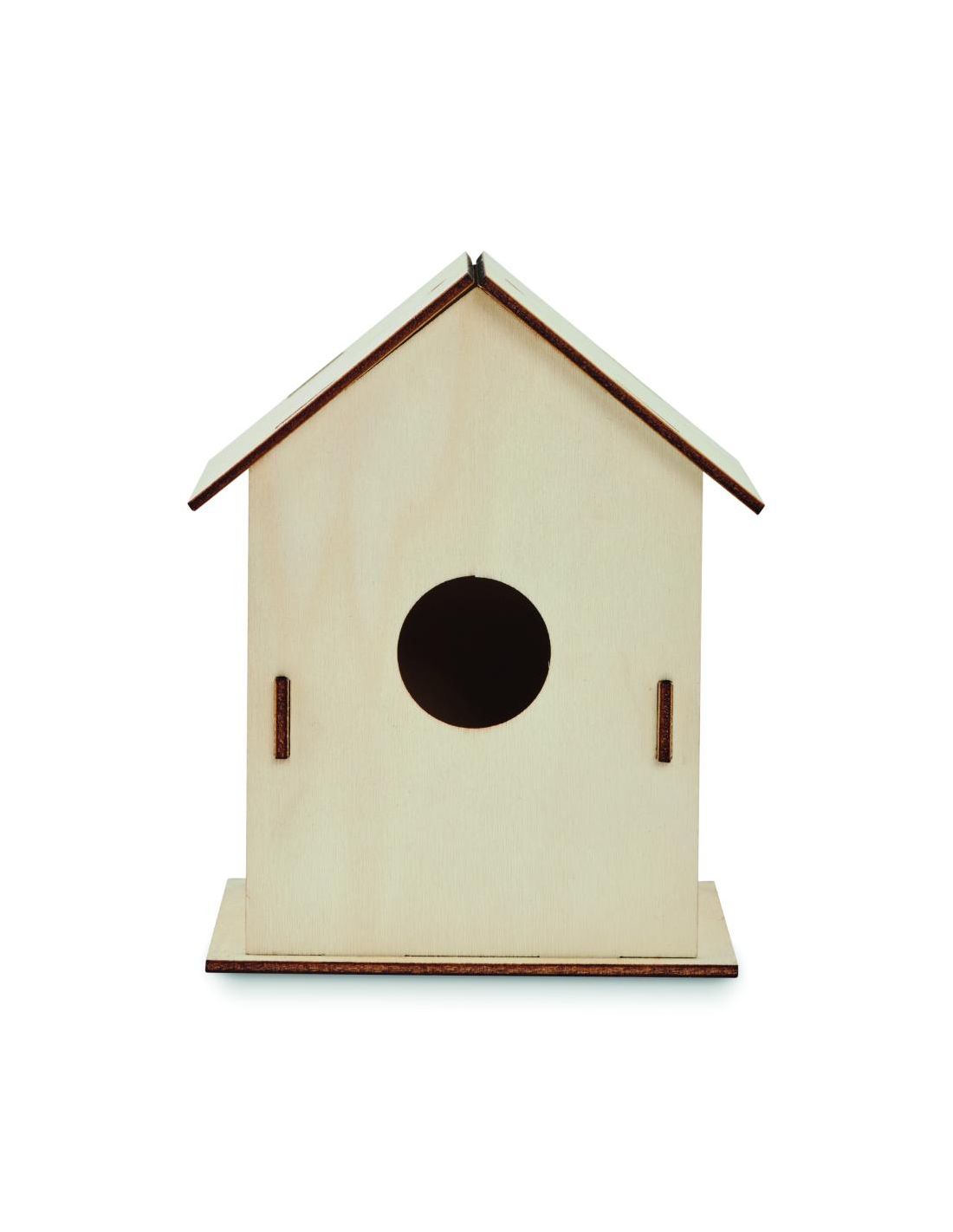 Kit de bricolaje para casitas de pájaros en madera de álamo. Incluye: 1 pincel y 6 pinturas al agua. Piezas de madera precortadas para el automontaje.