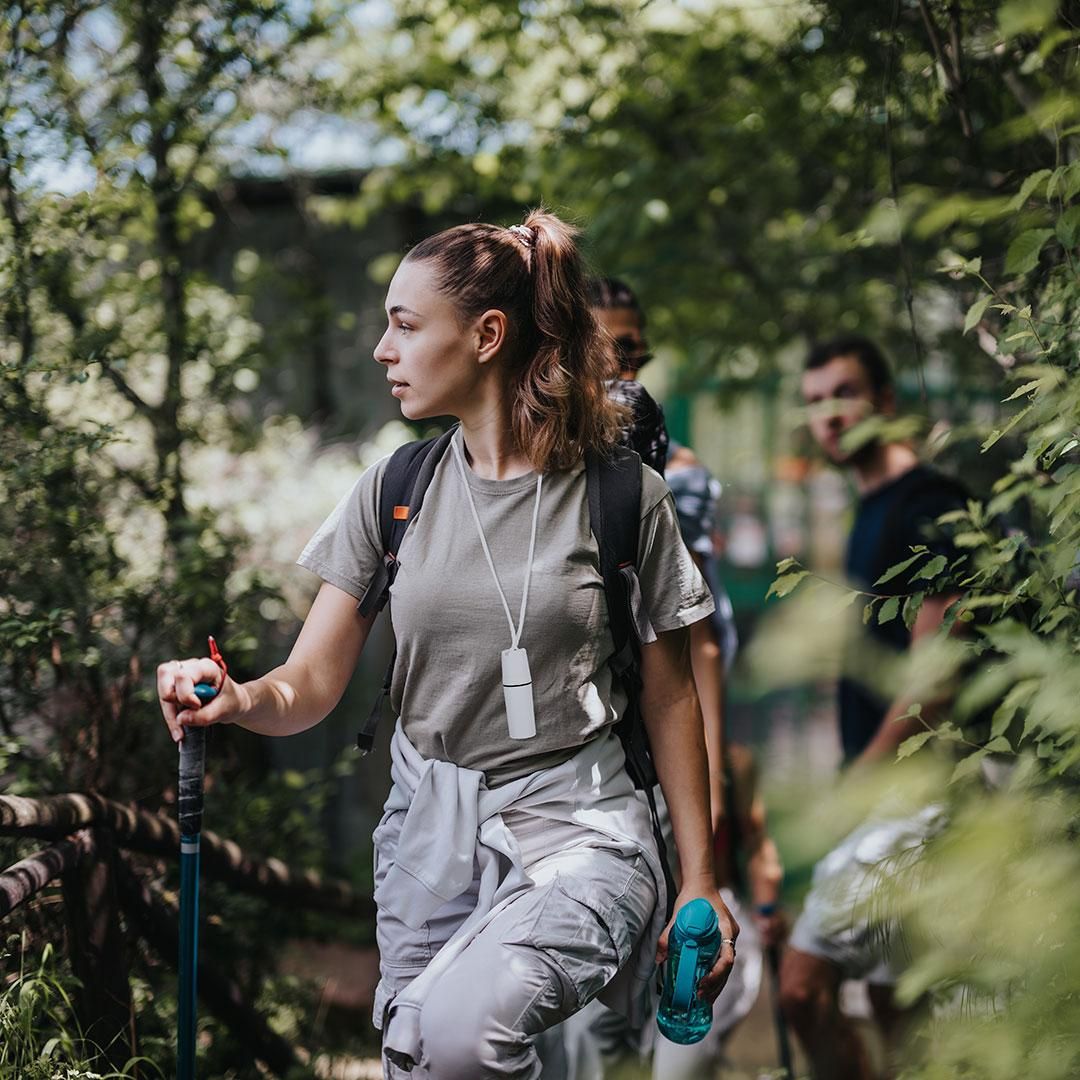 Kit de excursión de 6 accesorios presentado en un estuche en resistente ABS con cierre a rosca resistente al agua, con práctico cordón lanyard. Incluye gel hidroalcohólico, protección solar SPF30, vendas y 1 silbato.