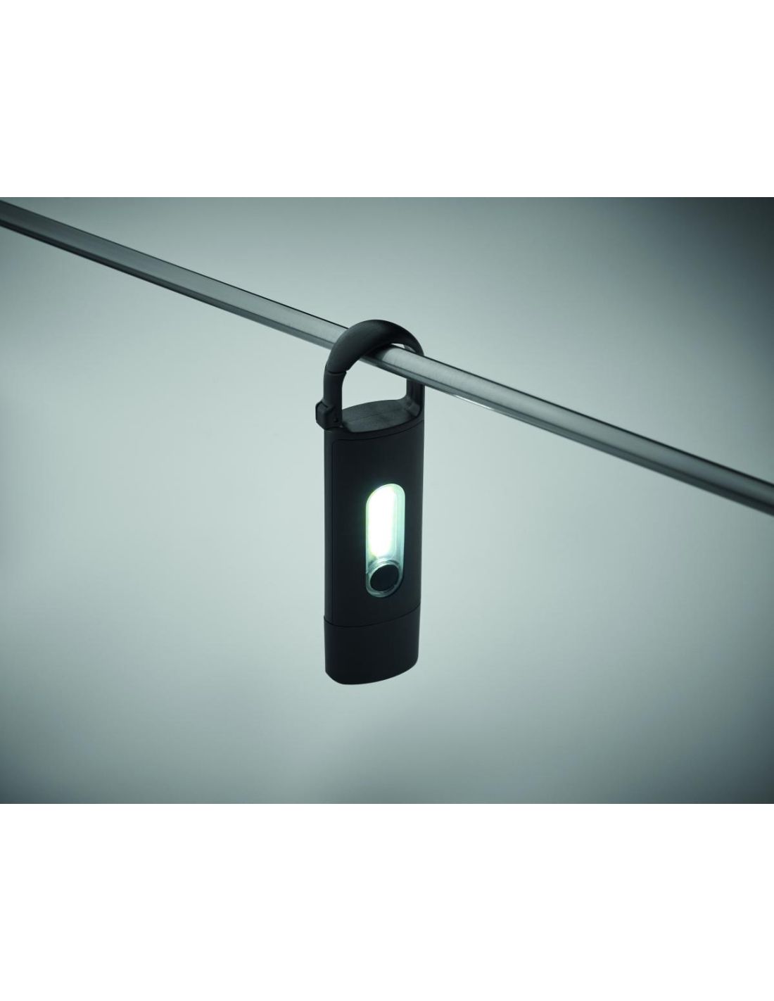 Linterna COB recargable de bolsillo con mosquetón en ABS. Luz de emergencia y 3 modos de iluminación. 1 pila recargable de litio de 3,7 V y 200 mAh…
