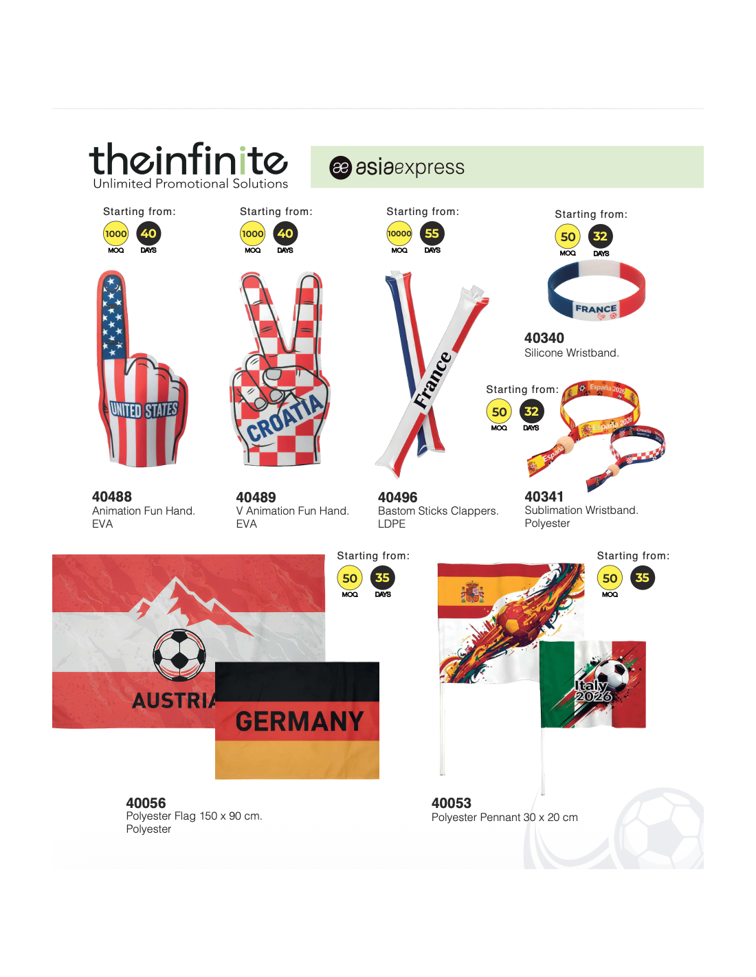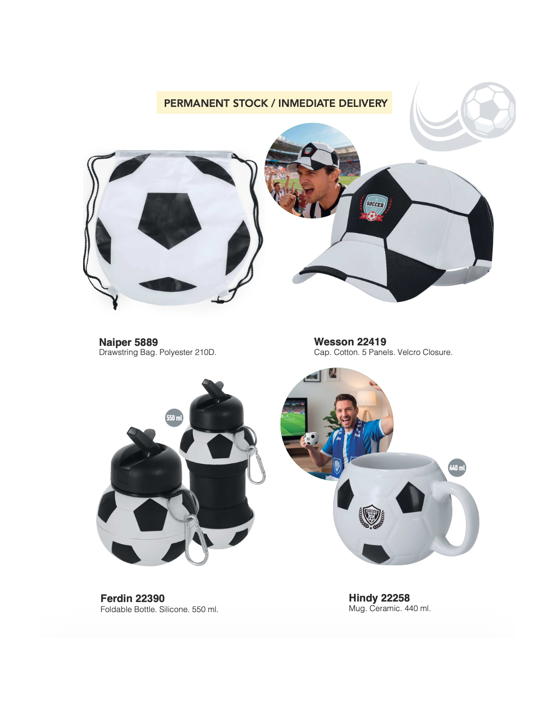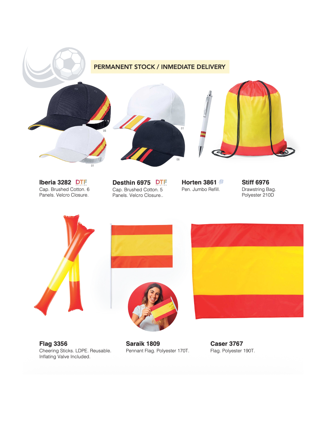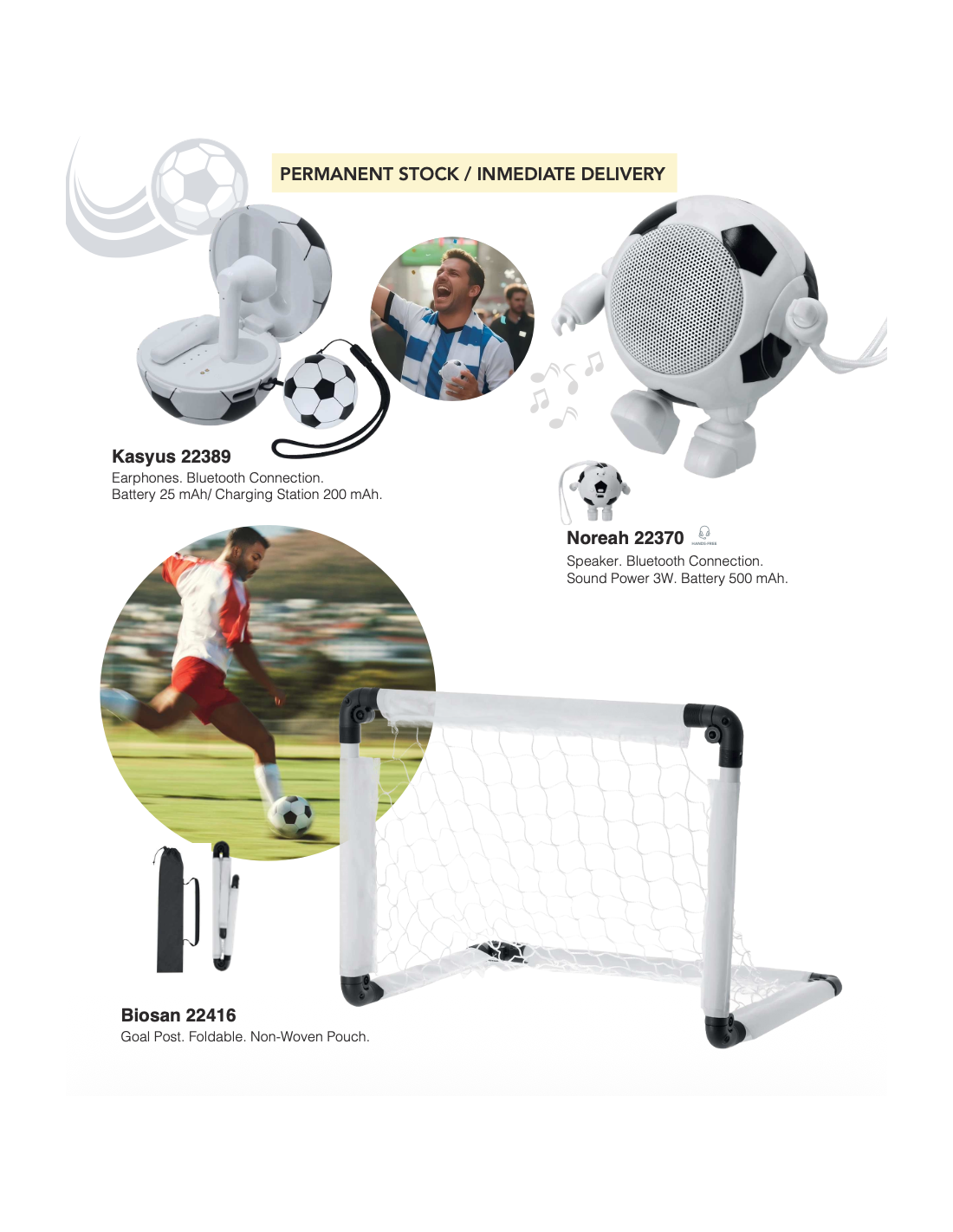 Si estás preparando una acción promocional para la World Cup 2026, en Goodie hemos reunido una selección de artículos de animación, regalos y accesorios futboleros pensados para eventos, activaciones de marca y campañas estacionales. La colección incluye opciones para pedido inmediato (stock permanente) y referencias para pedidos especiales.