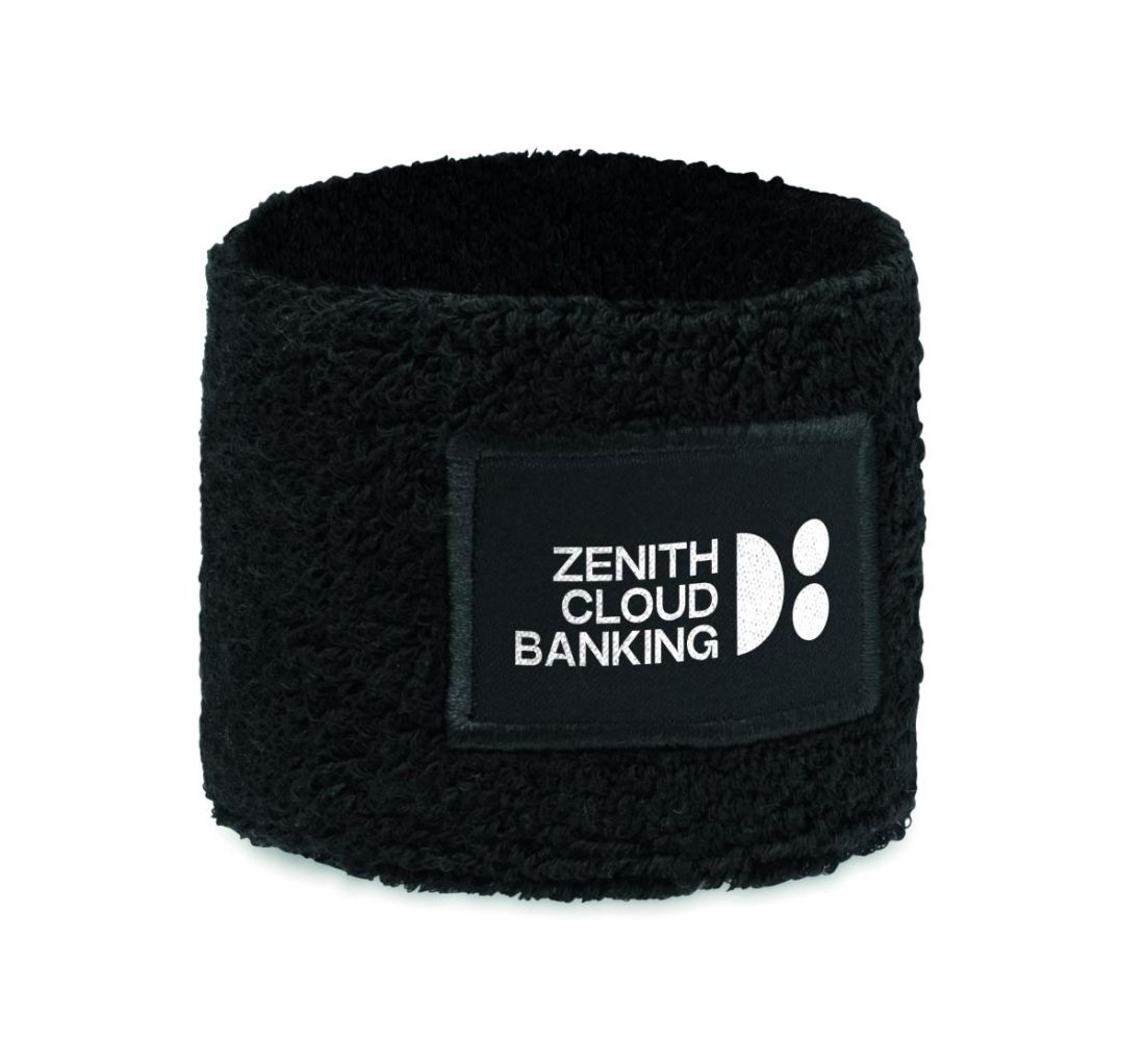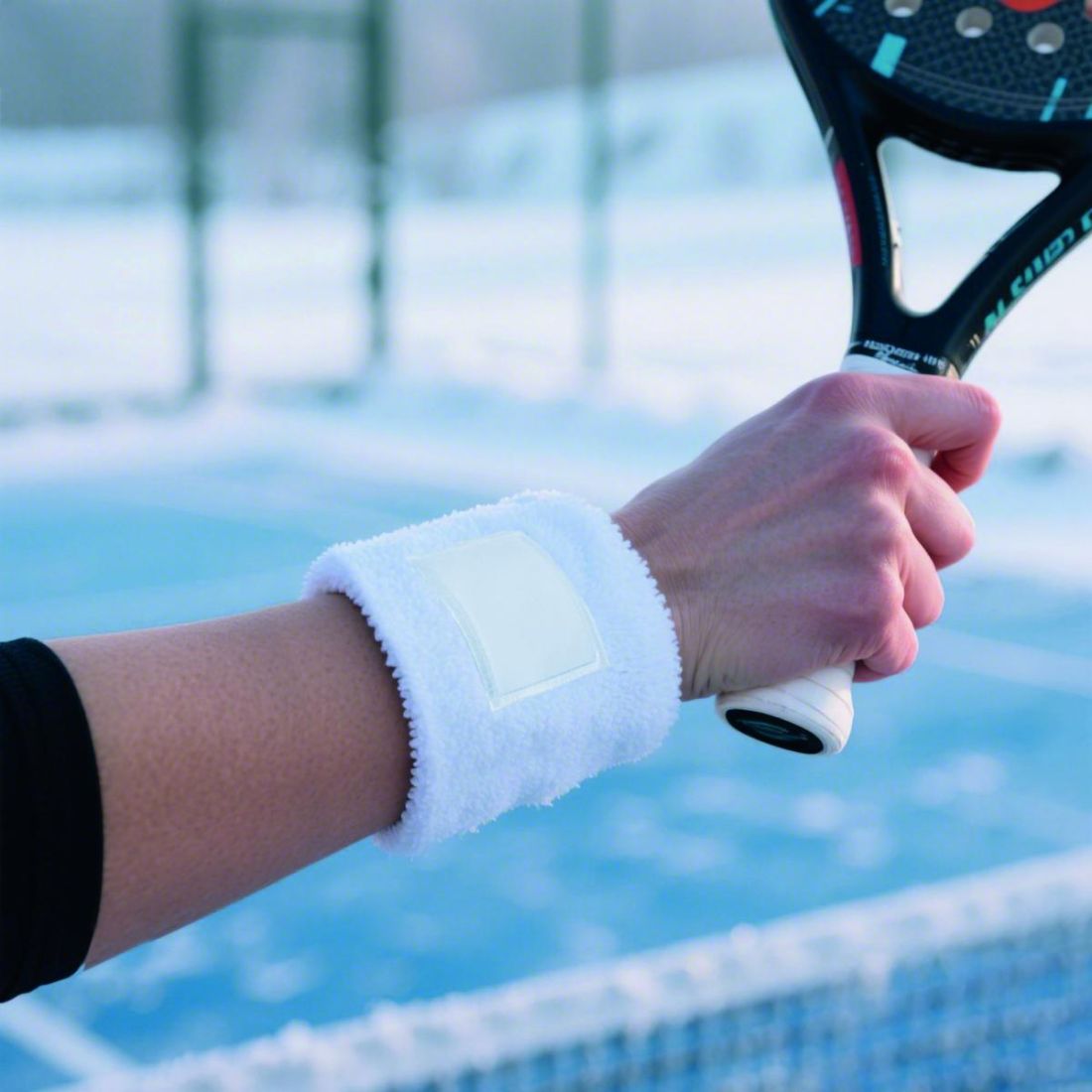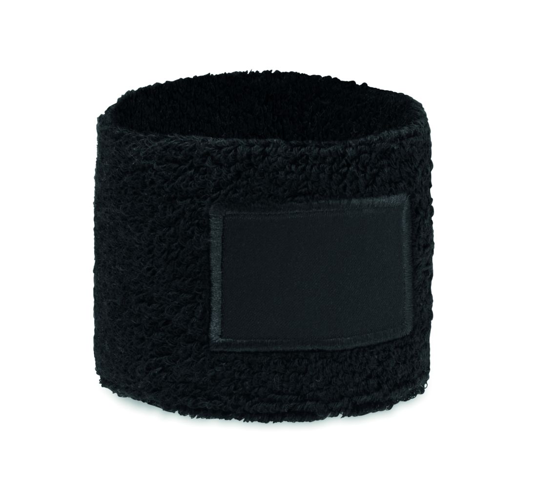 Muñequera de poli algodón (79% algodón/13% elástico/8% poliéster) con parche de algodón para la impresión.