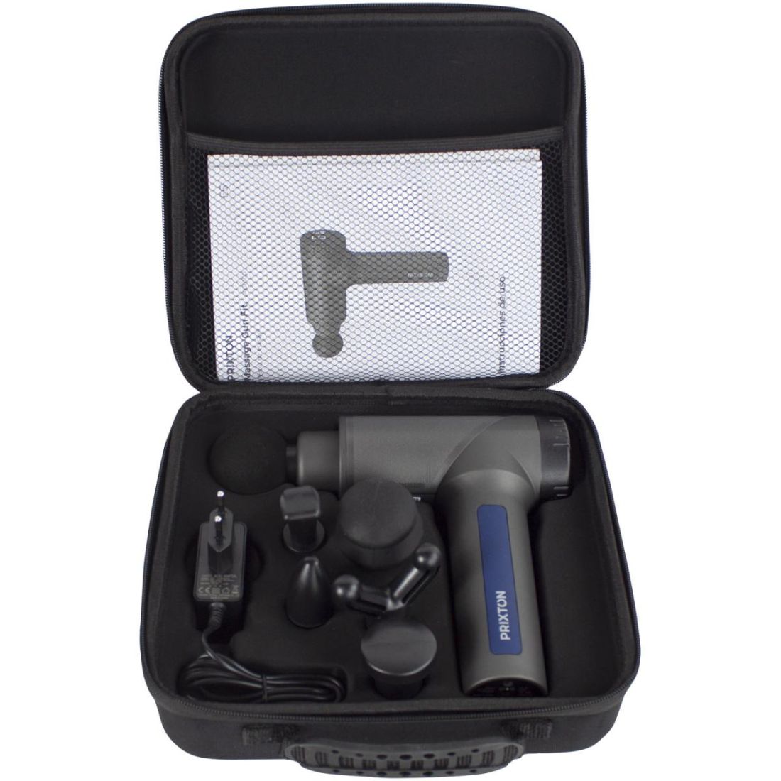 Pistola de masaje ligera e inalámbrica con funciones adecuadas tanto para deporte como para fisioterapia. Ayuda a calentar la musculatura antes de hacer ejercicio, recuperarse de entrenamientos de baja intensidad o aliviar el dolor después de entrenamientos de alta intensidad. Incluye 6 cabezales para realizar diferentes tipos de masajes en diferentes partes del cuerpo. Potencia del motor: 30 W-3300 rpm. Ajuste de velocidad: 1-9. Batería: 2500 mAh; voltaje: 14,4 V-16,8 V. Tiempo de carga: 3-4 horas. Autonomía: 5-6 horas. Nivel de ruido: 85 dB.
