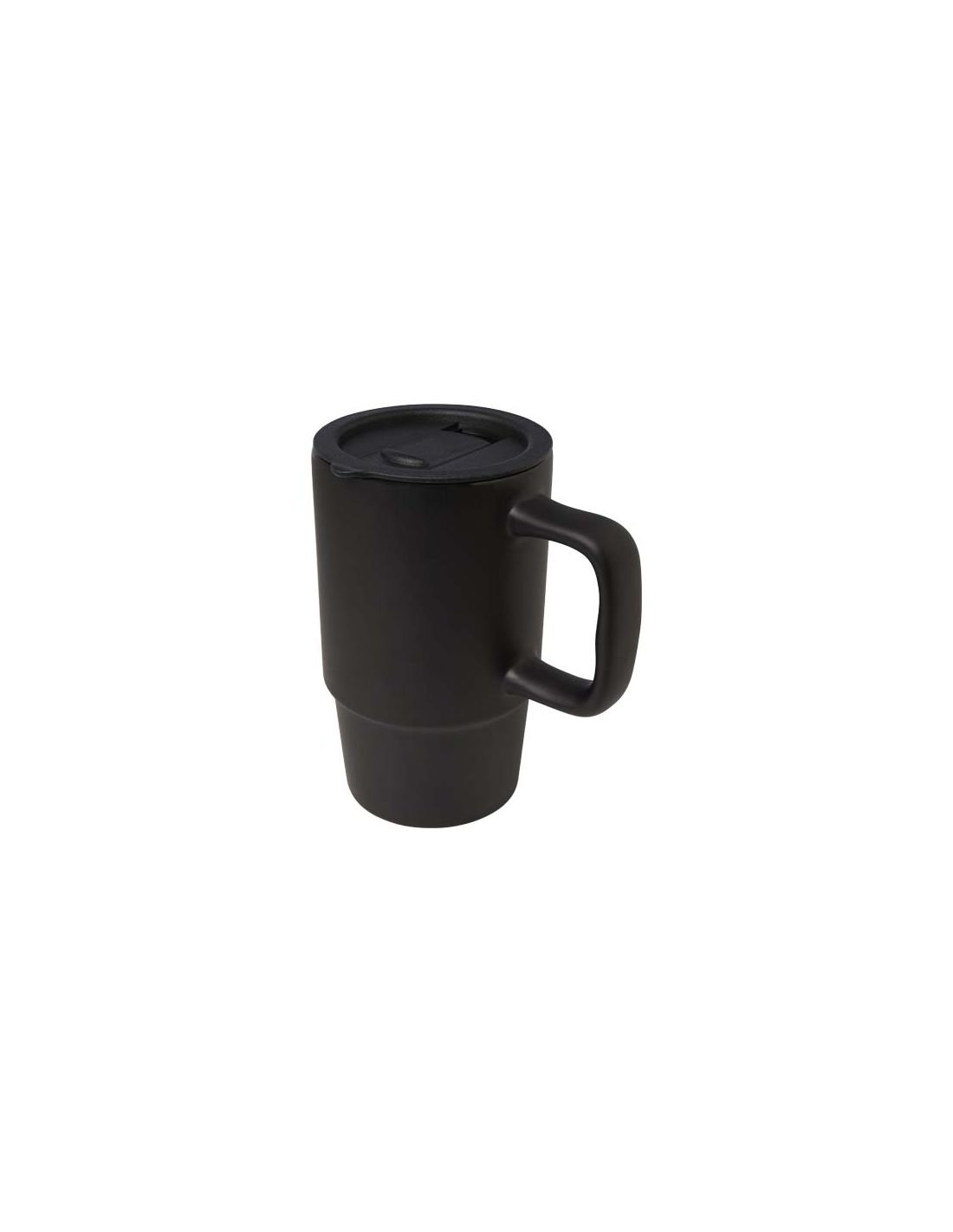 Taza de cerámica con asa de gran tamaño para facilitar su transporte y tapa de plástico a prueba de derrames para mayor comodidad cuando estás fuera. El exterior tiene un elegante acabado mate y la botella se puede lavar en el lavavajillas, independientemente del método de impresión. Se presenta en una caja de regalo de cartón reciclado. Capacidad: 450 ml.