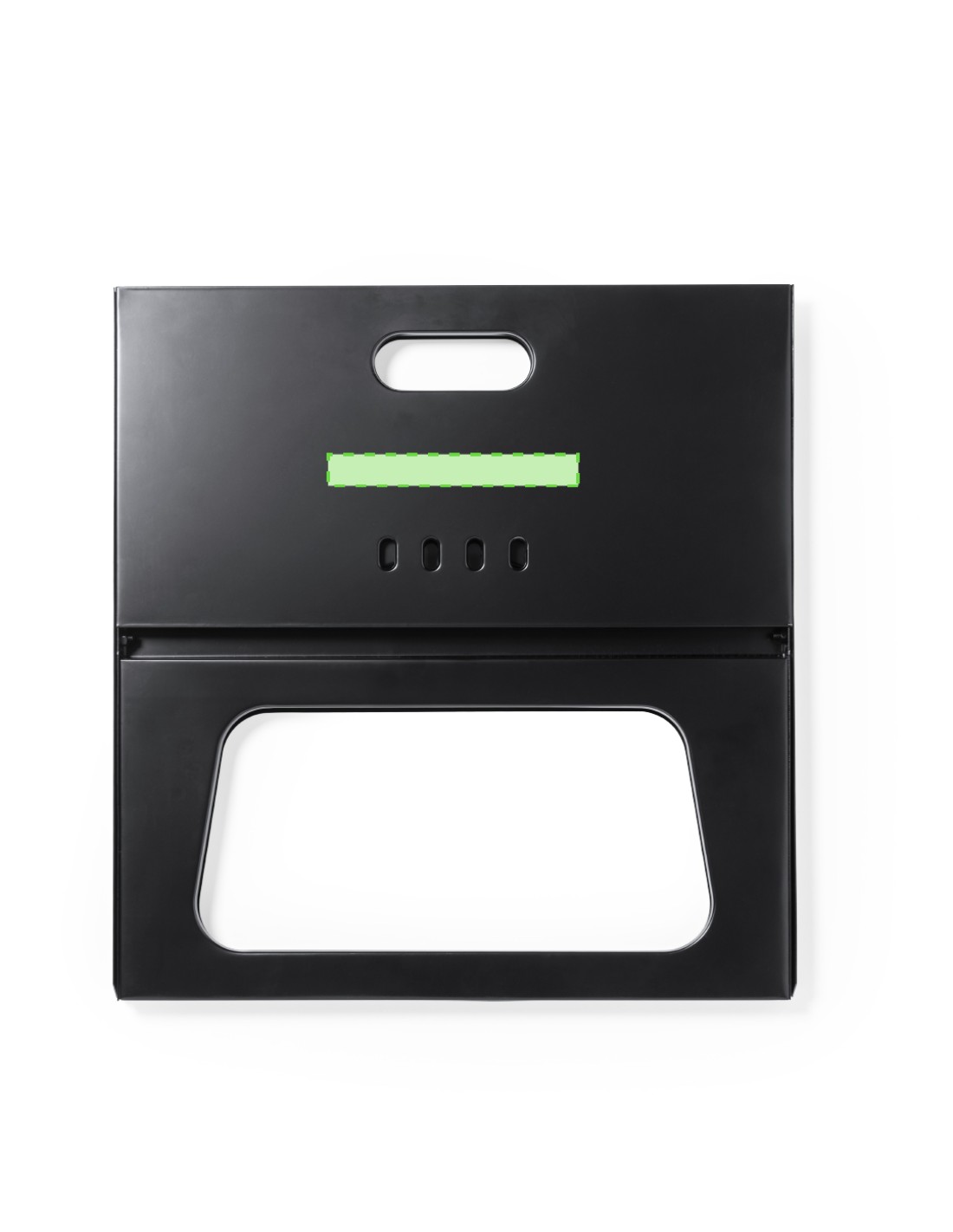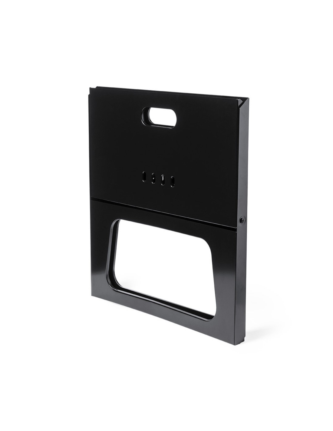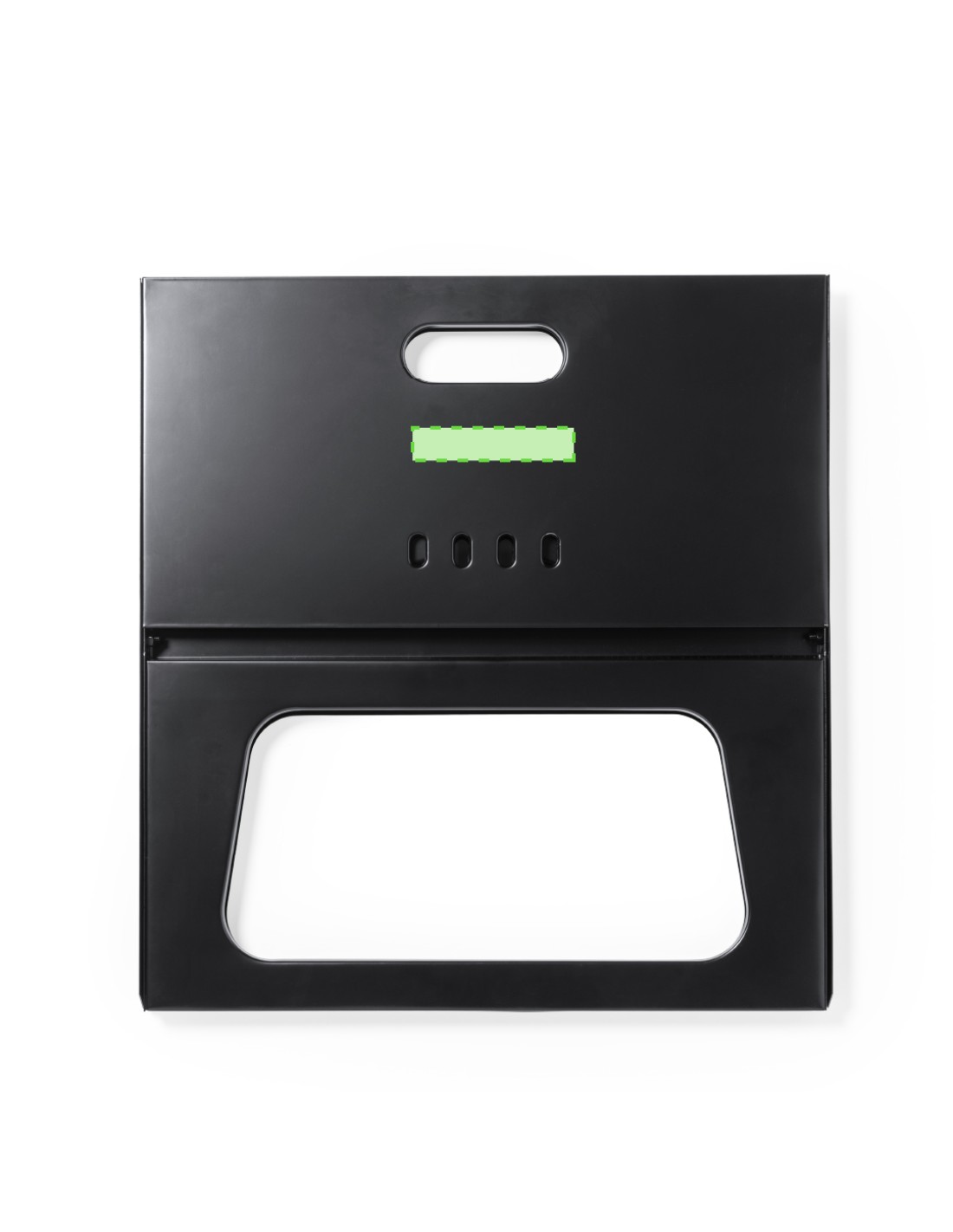 Barbacoa plegable fabricada en resistente metal de acabado en negro. Con cómodas asas y parrilla, de fácil plegado y tamaño compacto. Presentada en atractiva caja individual de diseño.