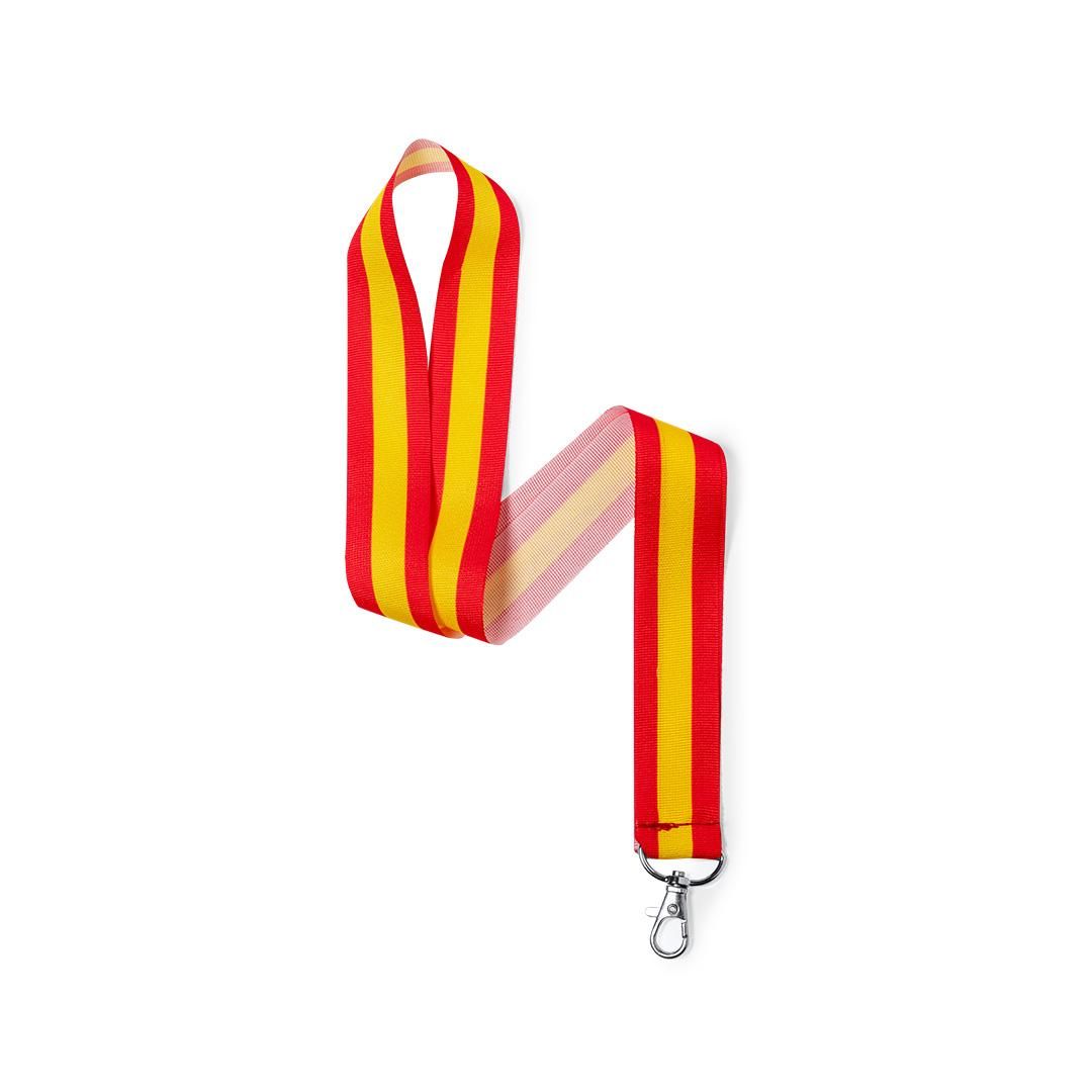Lanyard con tiras de ancho especial en resistente y suave poliéster con accesorio mosquetón metálico. Especialmente diseñado para personalización...
