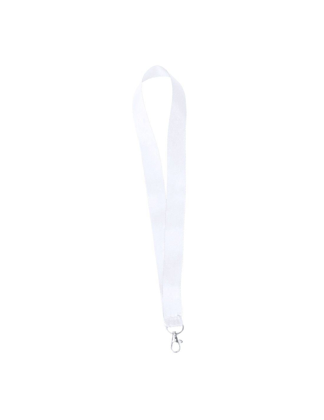 Lanyard con tiras de ancho especial en resistente y suave poliéster con accesorio mosquetón metálico. Especialmente diseñado para personalización...