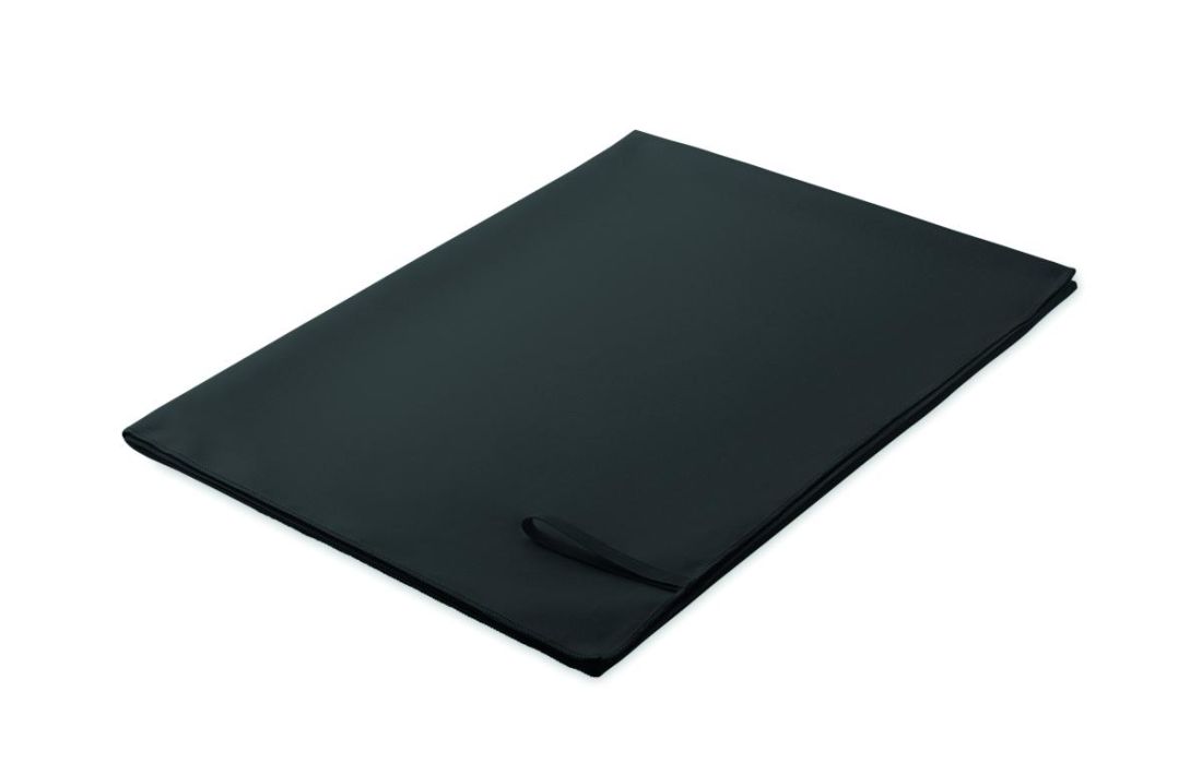 Toalla de microfibra fabricada en 90% poliéster y 10% poliamida con lazo elástico para colgar. Ligera y de secado rápido. Tamaño 100 cm x 150 cm.