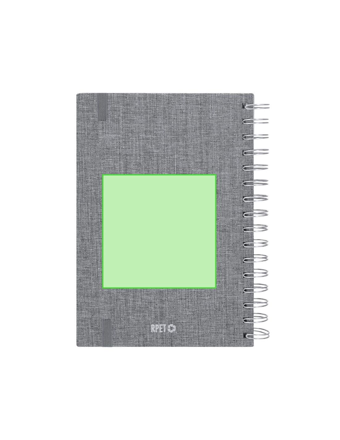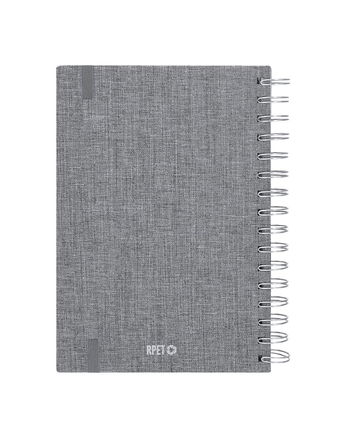 Agenda de anillas tamaño A5 fabricada en suave poliéster RPET. Con tapas rígidas y cierre de goma elástica a juego. Incluye caja kraft de...