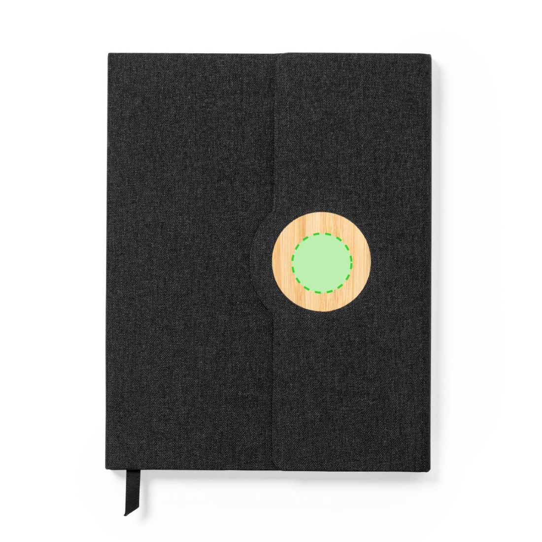 Bloc de notas desplegable de línea nature fabricado en poliéster 300D RPET. Con tapas duras y detalle en bambú en la portada. Interior desplegable...