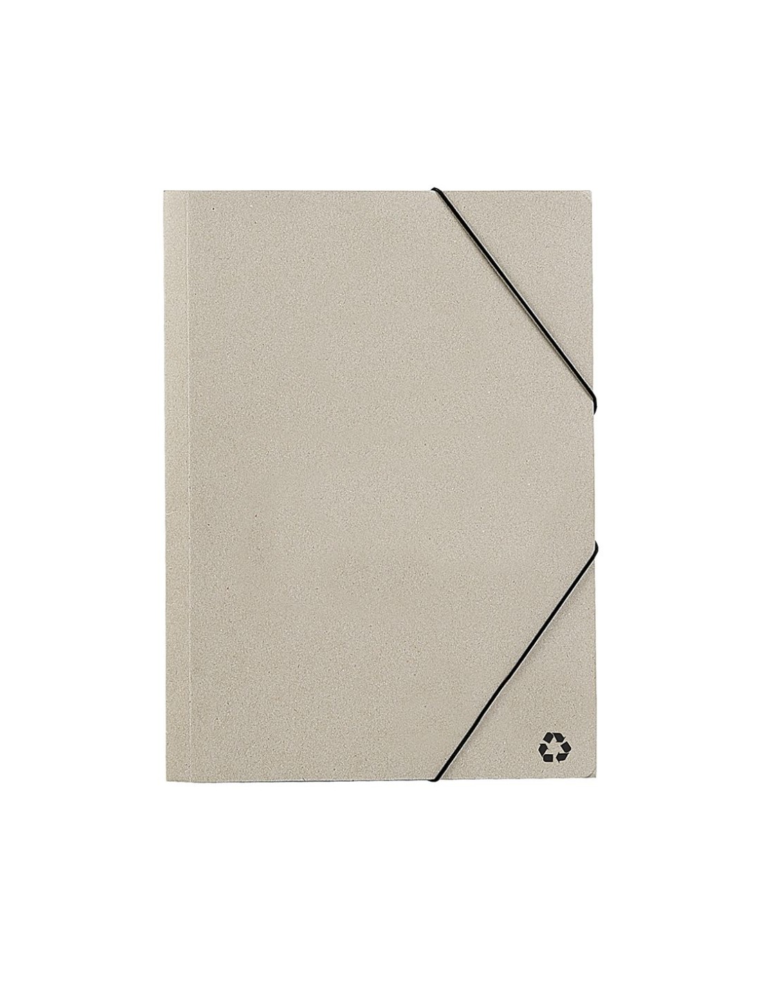Carpeta ecológica de gran capacidad con cierre elástico en cartón reciclado flexible y con sistema de plegado tripe.