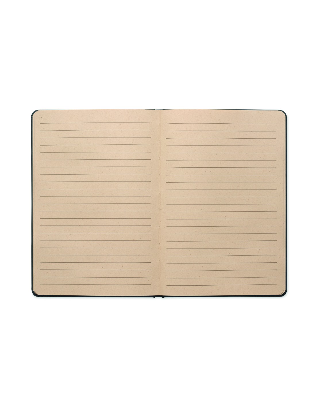 Libreta A5 con tapa dura y 160 páginas de papel rayado (80 hojas) en PLA de caña de azúcar (65% fibra de caña/35% papel).