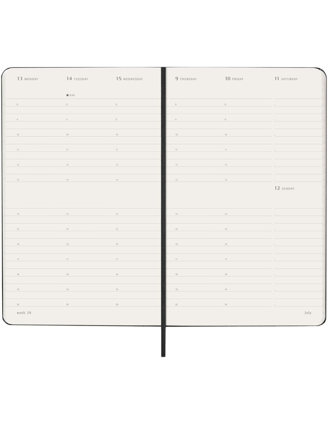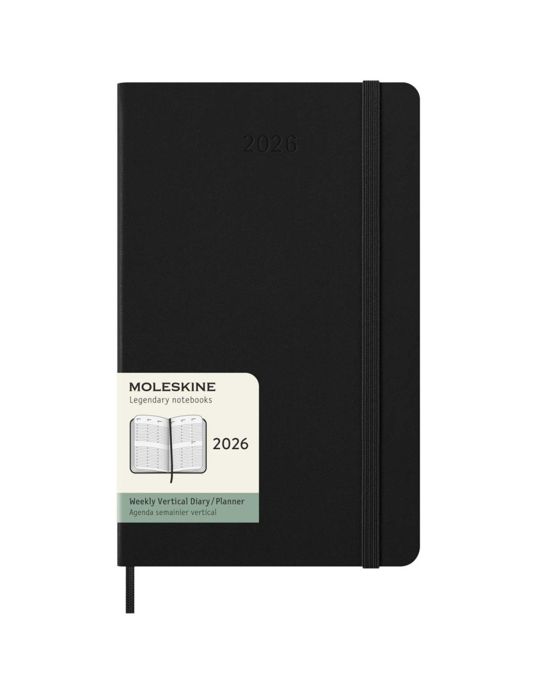 La agenda semanal vertical de tapa dura y tamaño L \ está fechada de enero a diciembre de 2026. Con un formato vertical que muestra cada semana en dos páginas con los días en la parte superior, este popular estilo de agenda es perfecto para quienes desean tener una vista general de la semana organizada. Incluye papel color marfil libre de ácidos, un cierre elástico negro, un marcapáginas de cinta, un bolsillo interior extensible de color a conjunto y adhesivos para la personalización, así como adhesivos del año para el lomo.