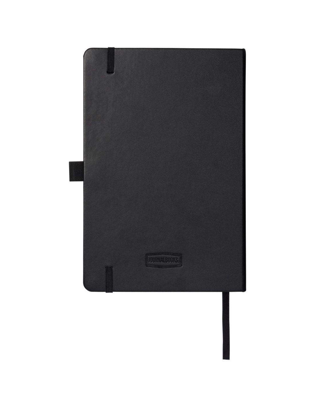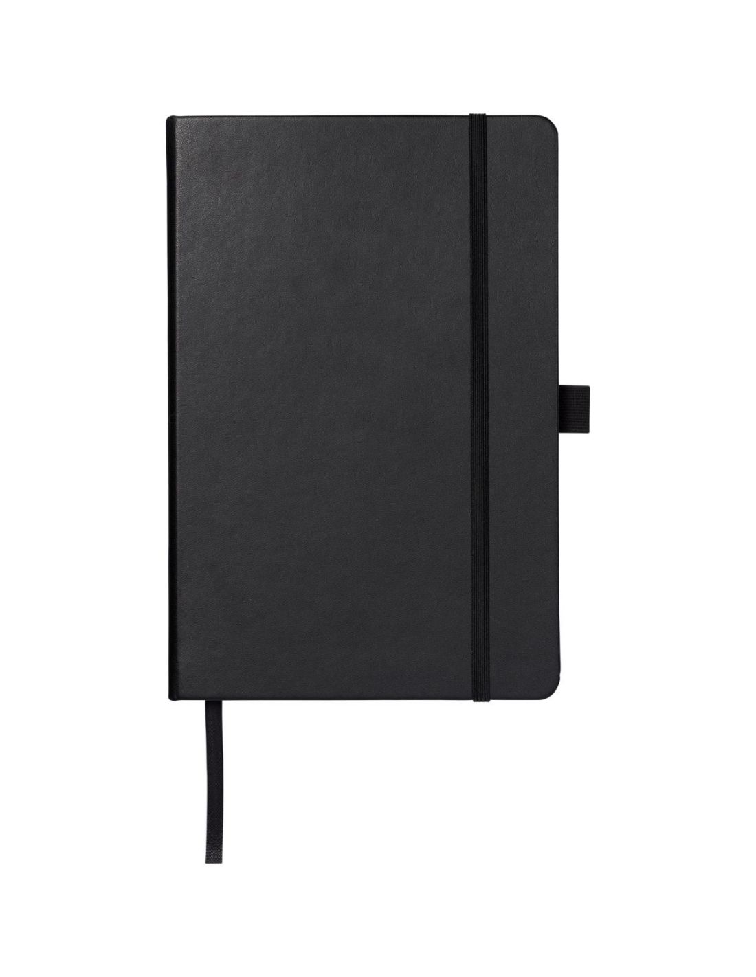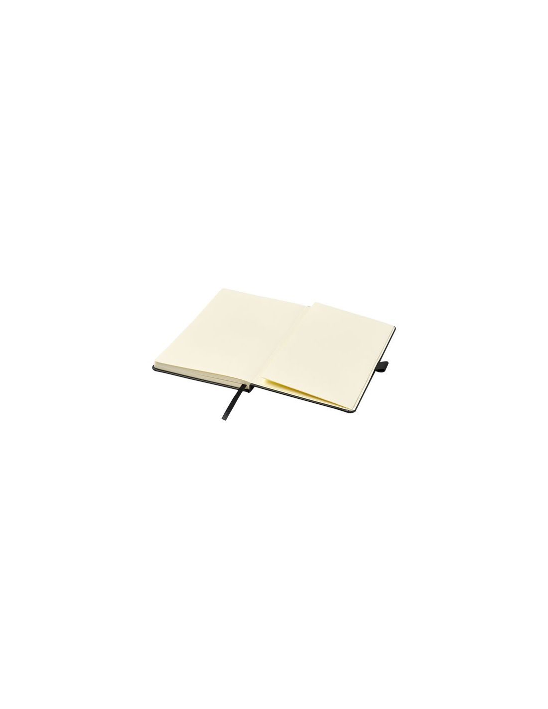 Libreta A5 (14,2 cm x 21,4 cm) de imitación a piel (piel sintética) con cinta elástica, cinta marcapáginas, soporte para bolígrafo y bolsillo trasero de acordeón. Incluye 96 hojas de papel rayado en color crema de 80 g/m² y se entrega en una funda blanca \.