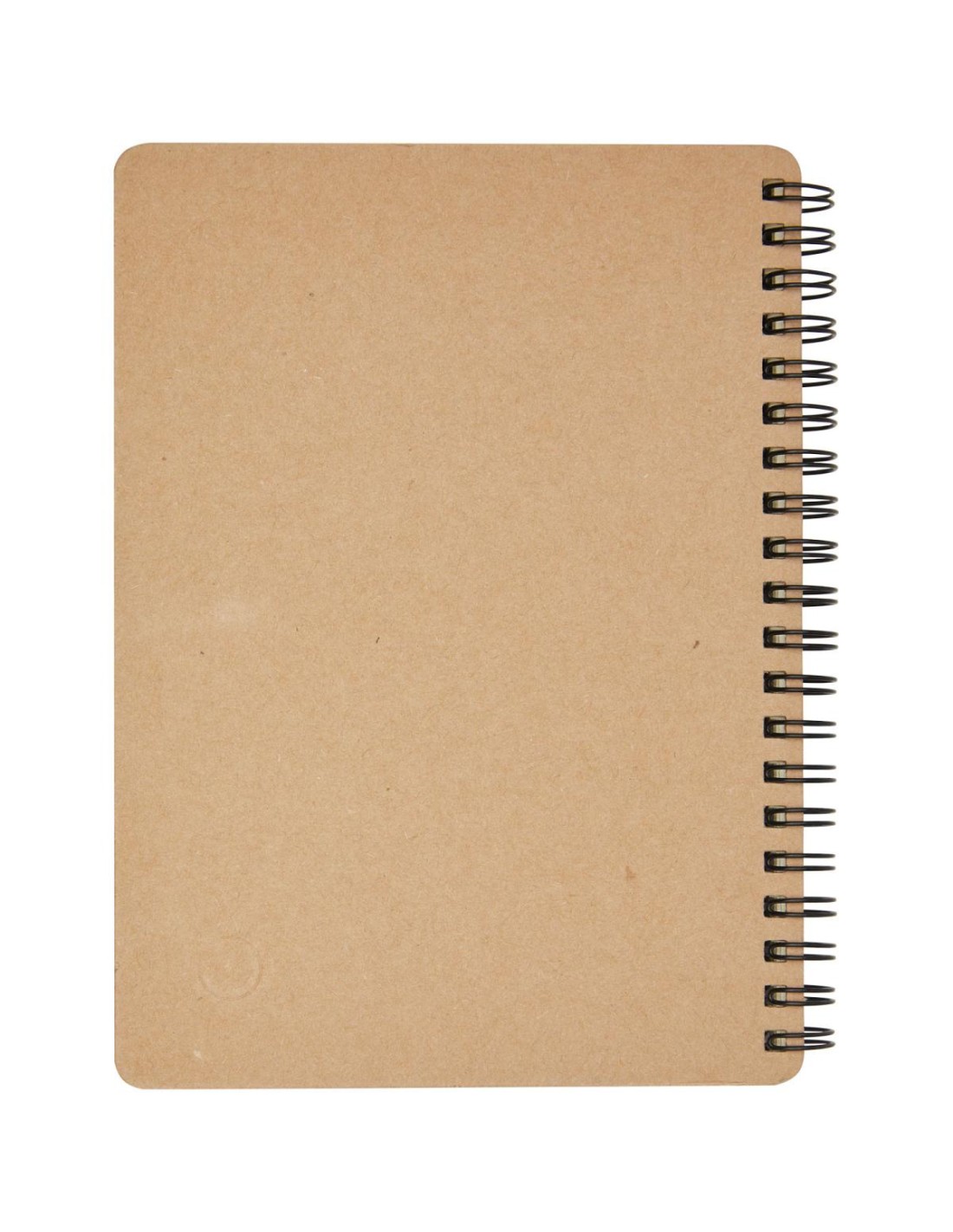 Cuaderno con cubierta de papel reciclado con 60 hojas de papel reciclado tamaño de referencia A6 rayado y un bolígrafo a juego. El cuaderno y el bolígrafo se empaquetan juntos.