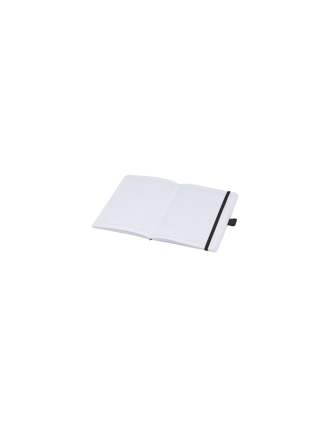 Libreta de papel con líneas reciclado (70 g/m²) 80 hojas con esquinas redondeadas, elástico de color y un soporte para bolígrafo que combina con los tonos del modelo 107384.