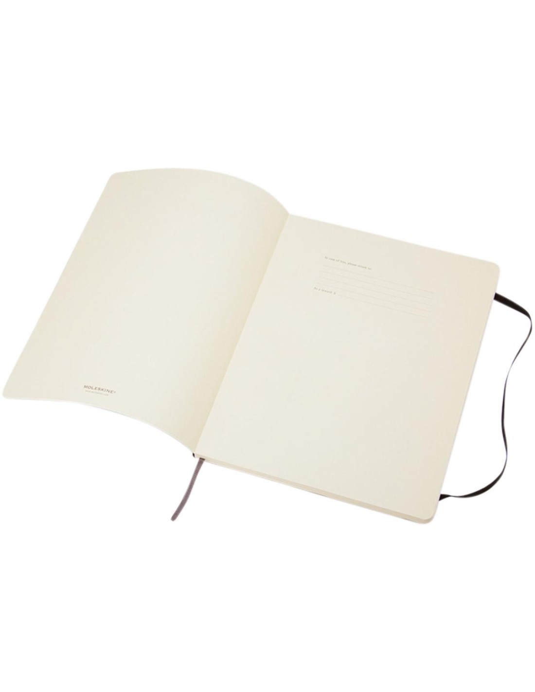 La libreta de tapa blanda XL (19 x 25 cm) está disponible en una amplia gama de elegantes colores intensos. La libreta cuenta con una tapa blanda de cartón con esquinas redondeadas, papel libre de ácido, un marcador y un cierre elástico. En la primera página hay una advertencia de «En caso de pérdida», con espacio para anotar una recompensa para quien lo encuentre. Unido a la cubierta posterior, hay un bolsillo interno extensible que incluye la historia de . El bolsillo se puede utilizar para papeles sueltos y notas. Contiene 192 páginas rayadas de color marfil.