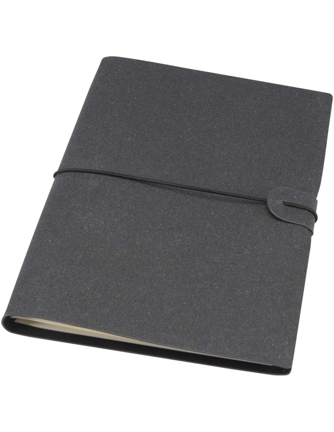 La libreta A5 \ rellenable tiene una cubierta de plástico reciclado con un cierre elástico que sujeta con seguridad dos cuadernos interiores, uno de puntos y otro de rayas. Cada cuaderno incluye 32...