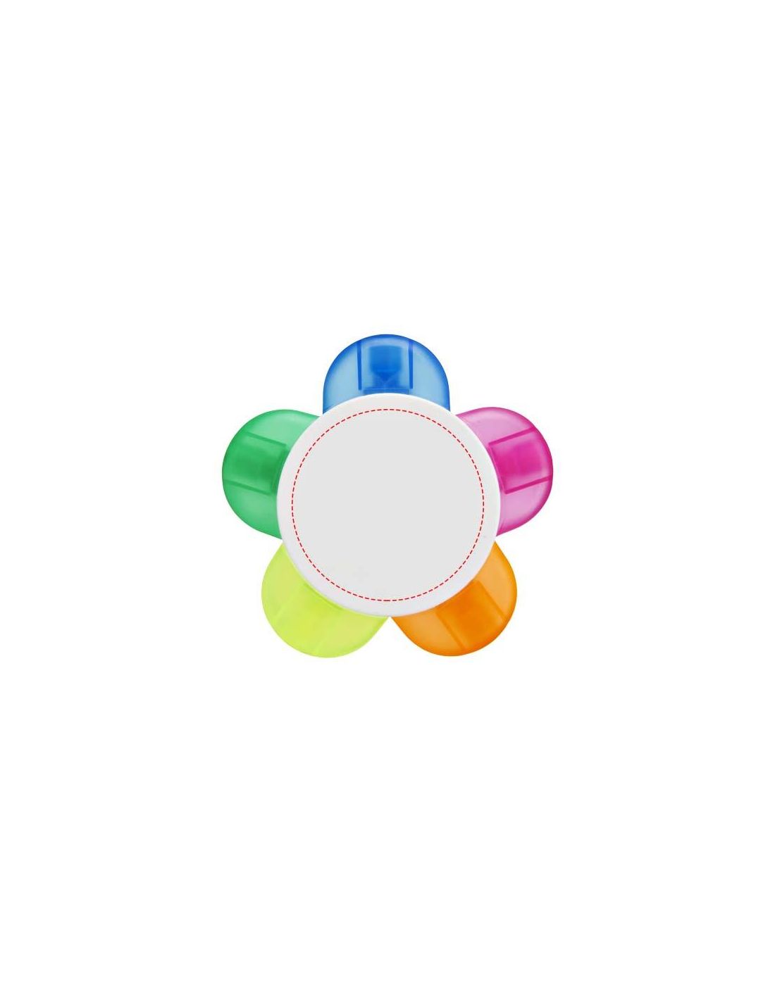 Marcador fluorescente en forma de flor, con cinco marcadores de colores en naranja, rosa, azul, verde y amarillo. ¡Advertencia! No apto para niños menores de tres años. Piezas pequeñas. Peligro de asfixia.