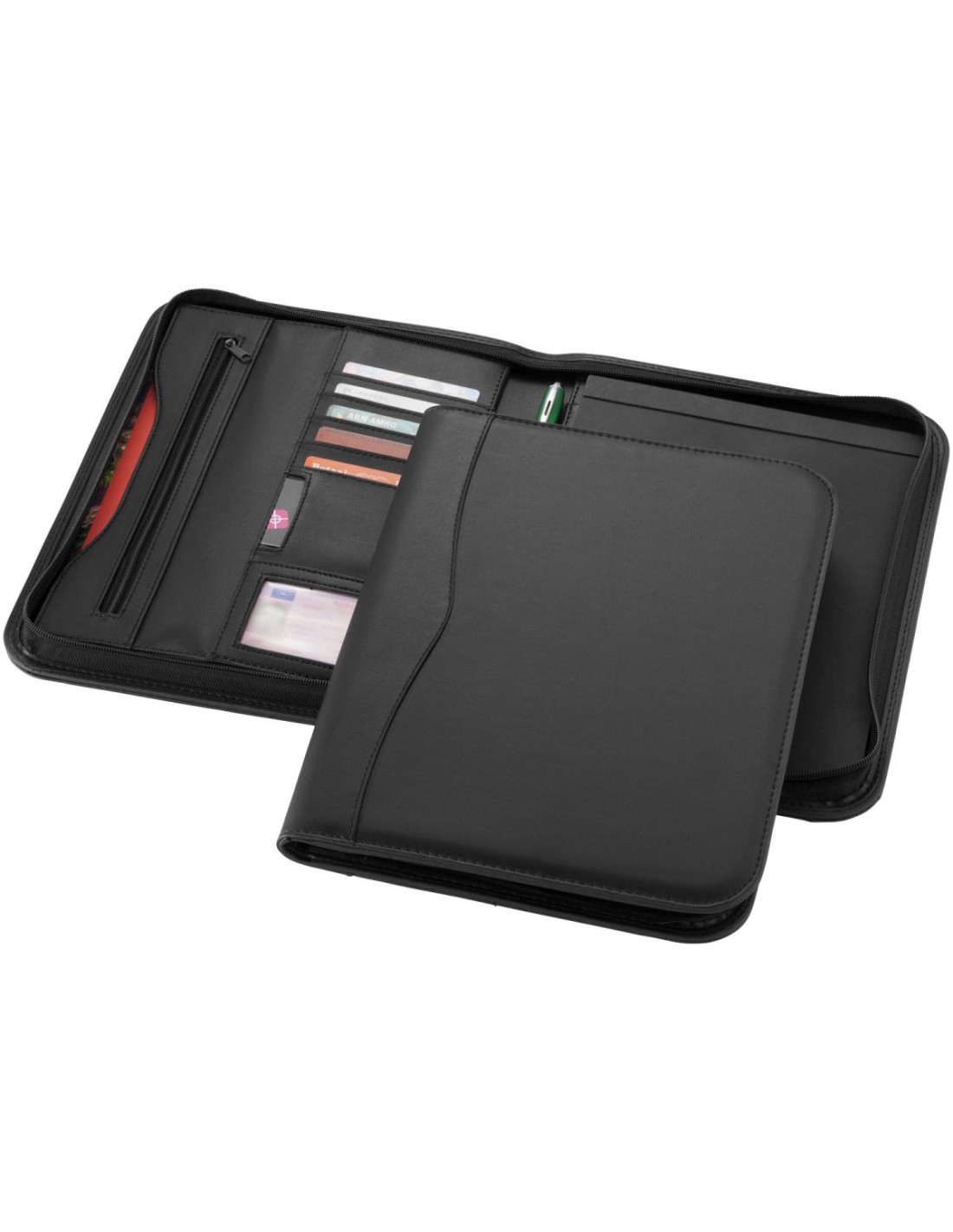 El artículo perfecto con el que cada empleado contribuye indirectamente a dar a conocer su marca: la cartera Ebony. La cartera, de tamaño A4, incluye un práctico compartimento y un bolsillo con cremallera para guardar documentos. Además, cuenta con un bloc de notas forrado de 20 páginas y un bucle para el bolígrafo (bolígrafo y accesorios no incluidos). Cierra la cartera con la cremallera para mantener el contenido ordenado y bien protegido. La cartera está fabricada en imitación de piel duradera y ofrece mucho espacio para logotipos grandes.