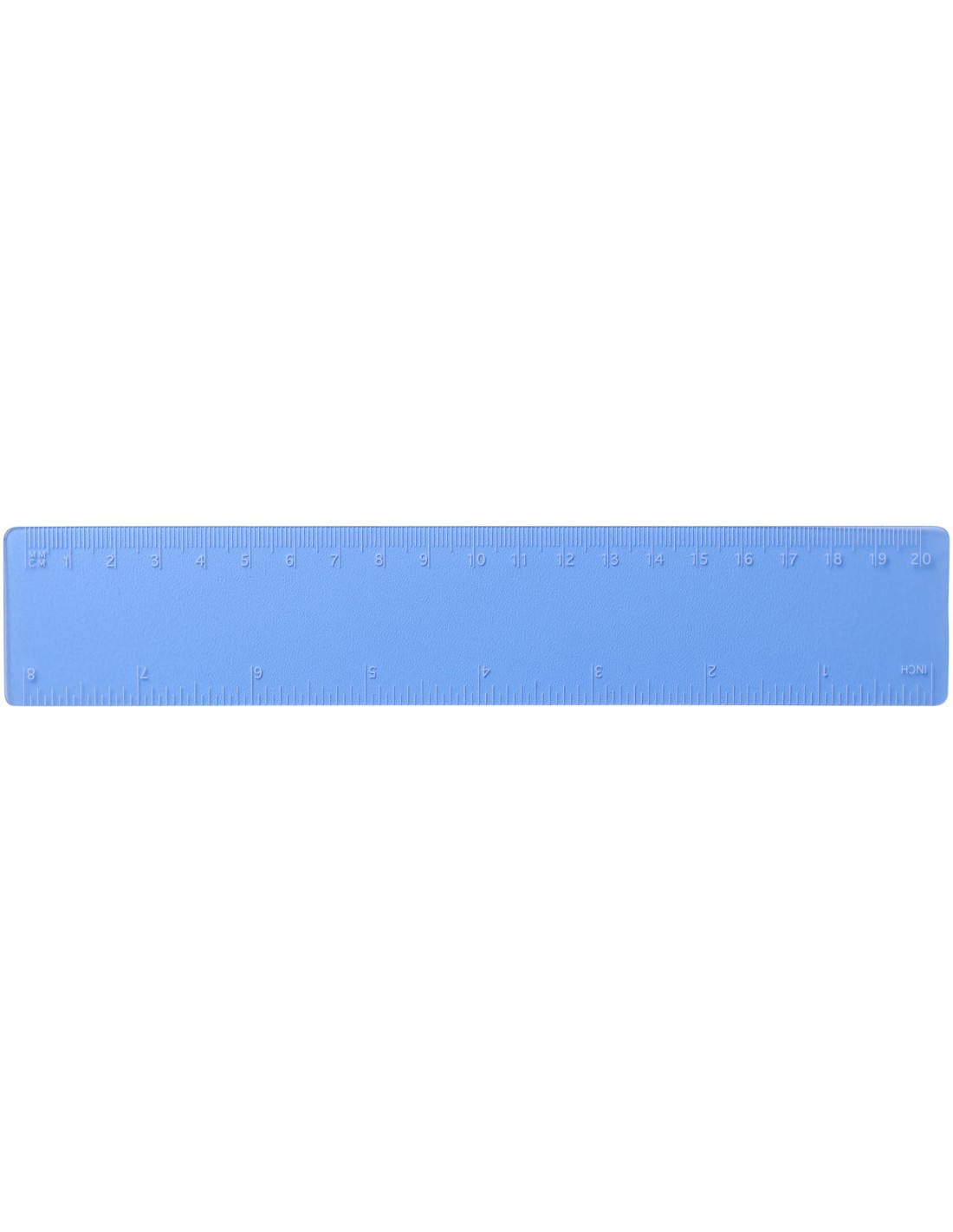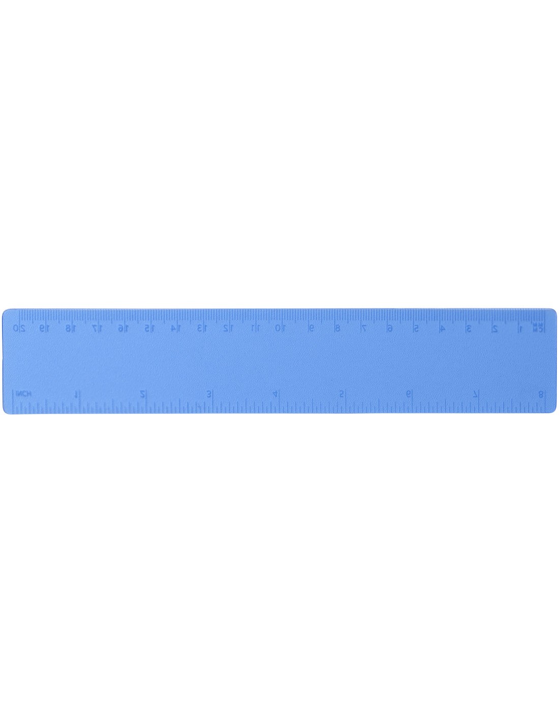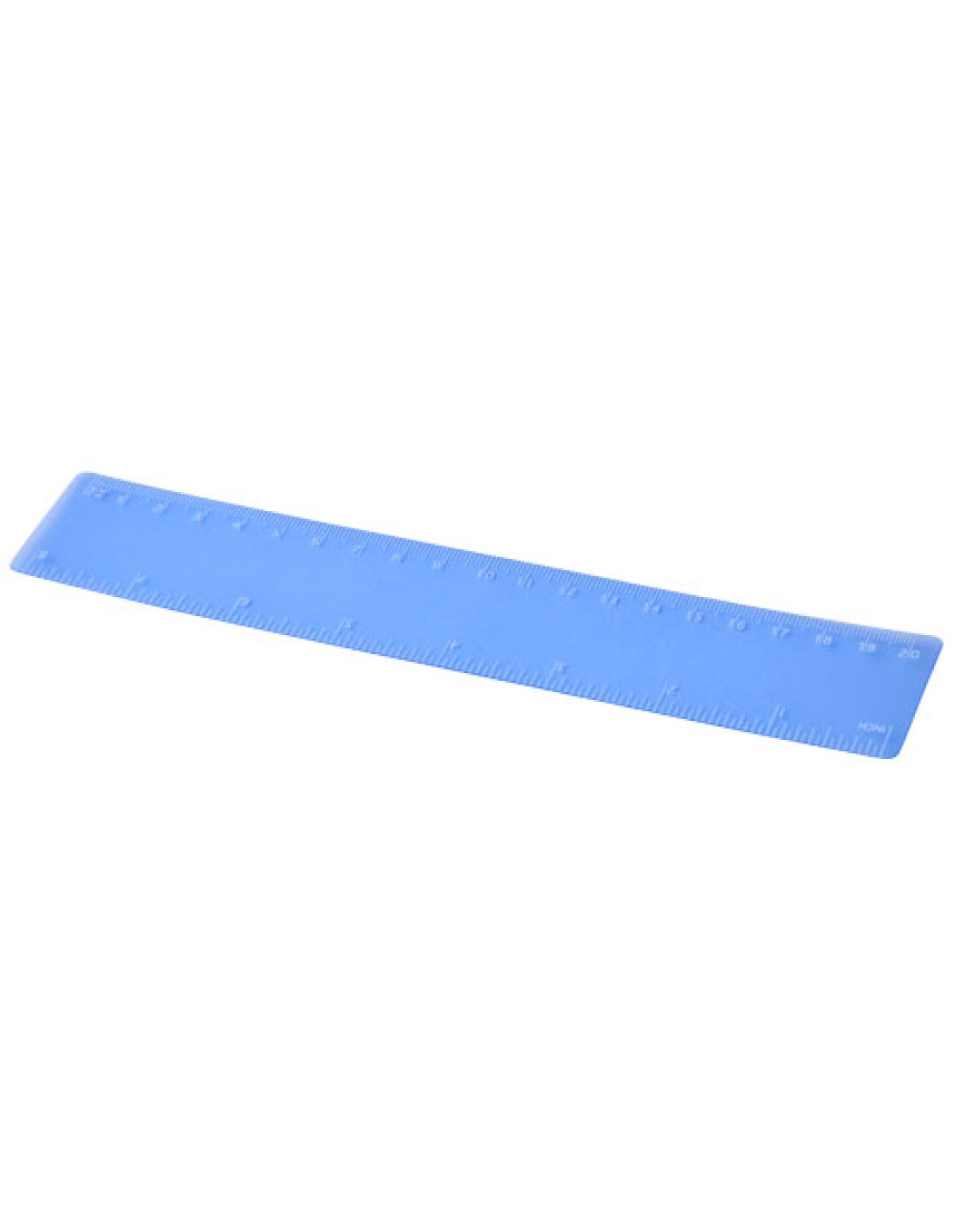 Regla flexible de plástico ligero con marcas tanto en pulgadas como en centímetros. Tenga en cuenta que las marcas de la regla se imprimen junto con los logos, las reglas estándar de stock no llevarán marcas.