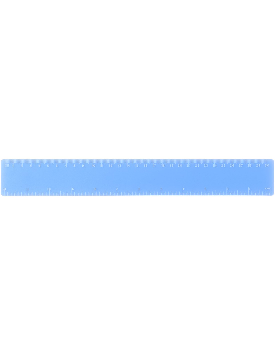 Regla flexible de plástico ligero con marcas tanto en pulgadas como en centímetros. Tenga en cuenta que las marcas de la regla se imprimen junto con los logos, las reglas estándar de stock no llevarán marcas.