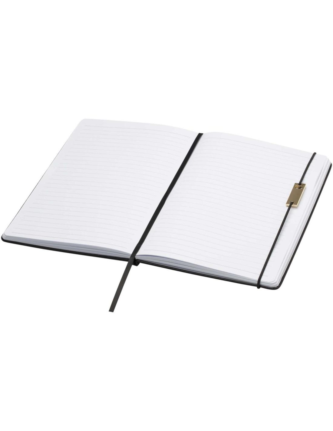 El conjunto \ es una elegante combinación de una libreta A5 y un rollerball. El bolígrafo tiene la parte superior del cuerpo de latón reciclado con acabado cromado dorado, la parte inferior del cuerpo con revestimiento pulverizado negro/marrón, accesorios metálicos cromados dorados y el logotipo LUXE en el anillo central. Color de la tinta: Azul. Longitud de escritura: 400 metros. Tamaño del plumín: 0,7 mm. La libreta tiene 80 hojas de papel rayado de 80 g/m², tapa de plástico reciclado, cierre elástico, cinta marcapáginas y bolsillo de acordeón. Accesorio de metal cromado dorado en el cierre elástico. Se presenta en una caja de regalo de cartón reciclado.