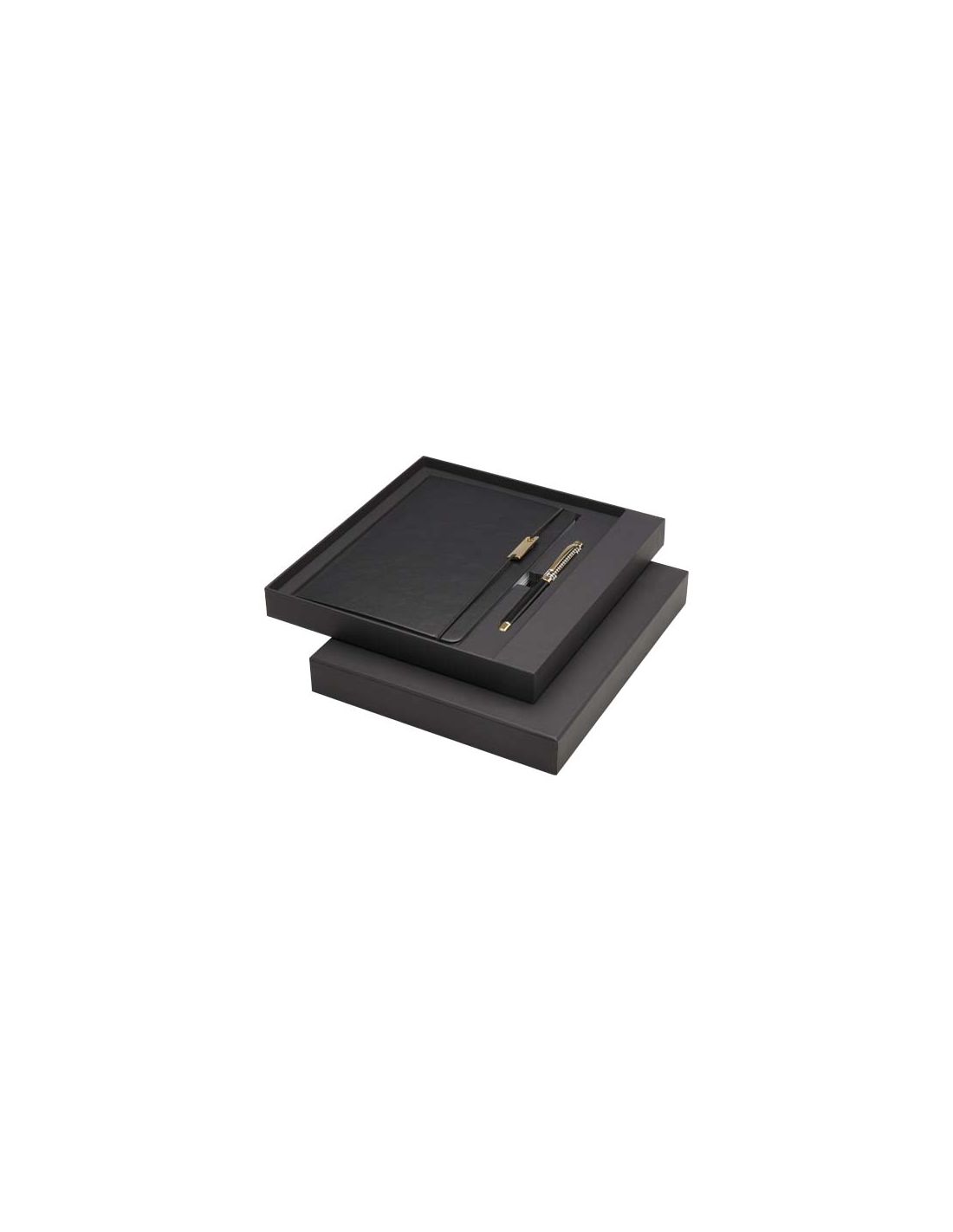 El conjunto \ es una elegante combinación de una libreta A5 y un rollerball. El bolígrafo tiene la parte superior del cuerpo de latón reciclado con acabado cromado dorado, la parte inferior del...