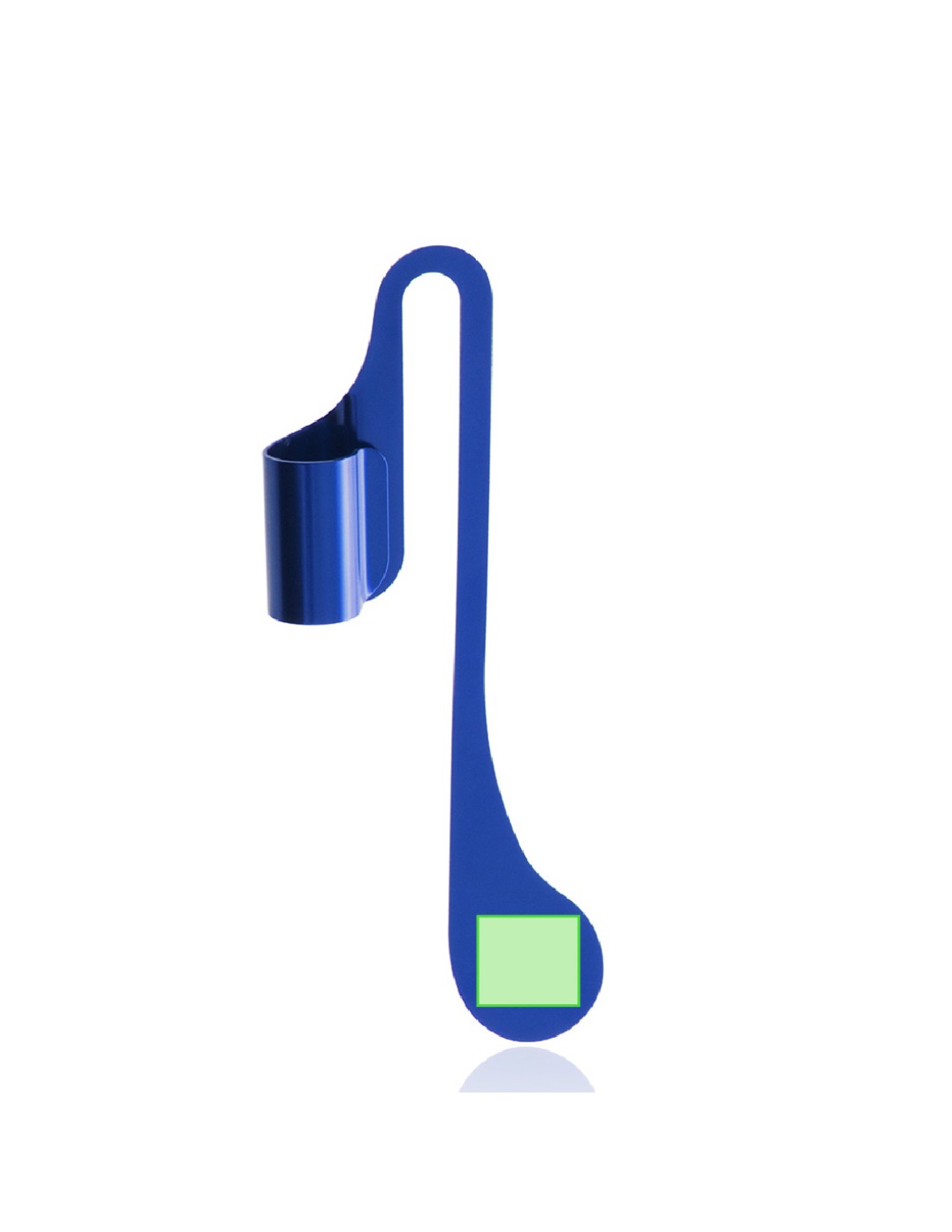 Original marcapáginas de acabado en aluminio brillante, en variados colores y con soporte para bolígrafo integrado. Presentado en funda de PVC.