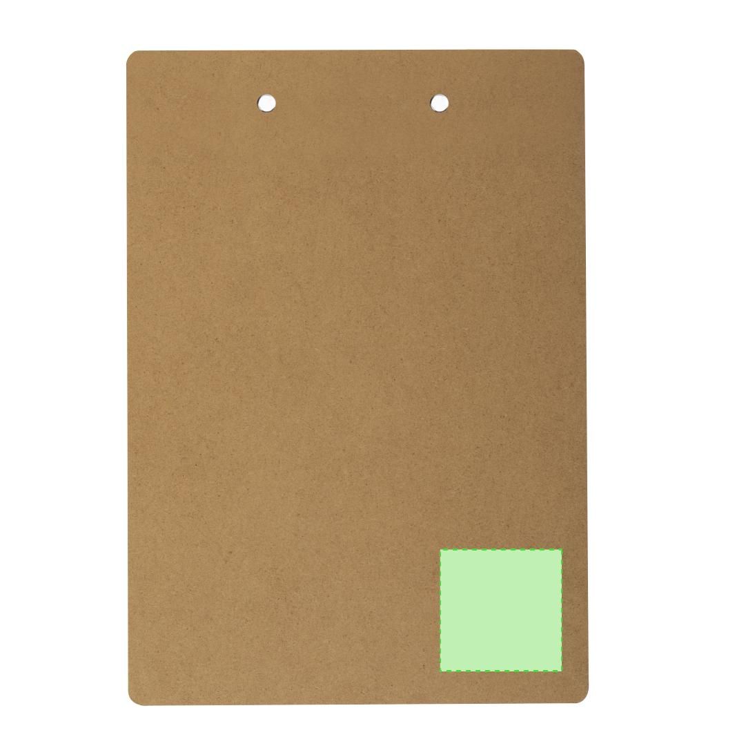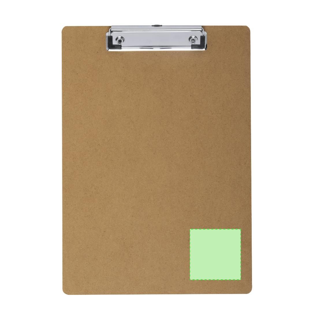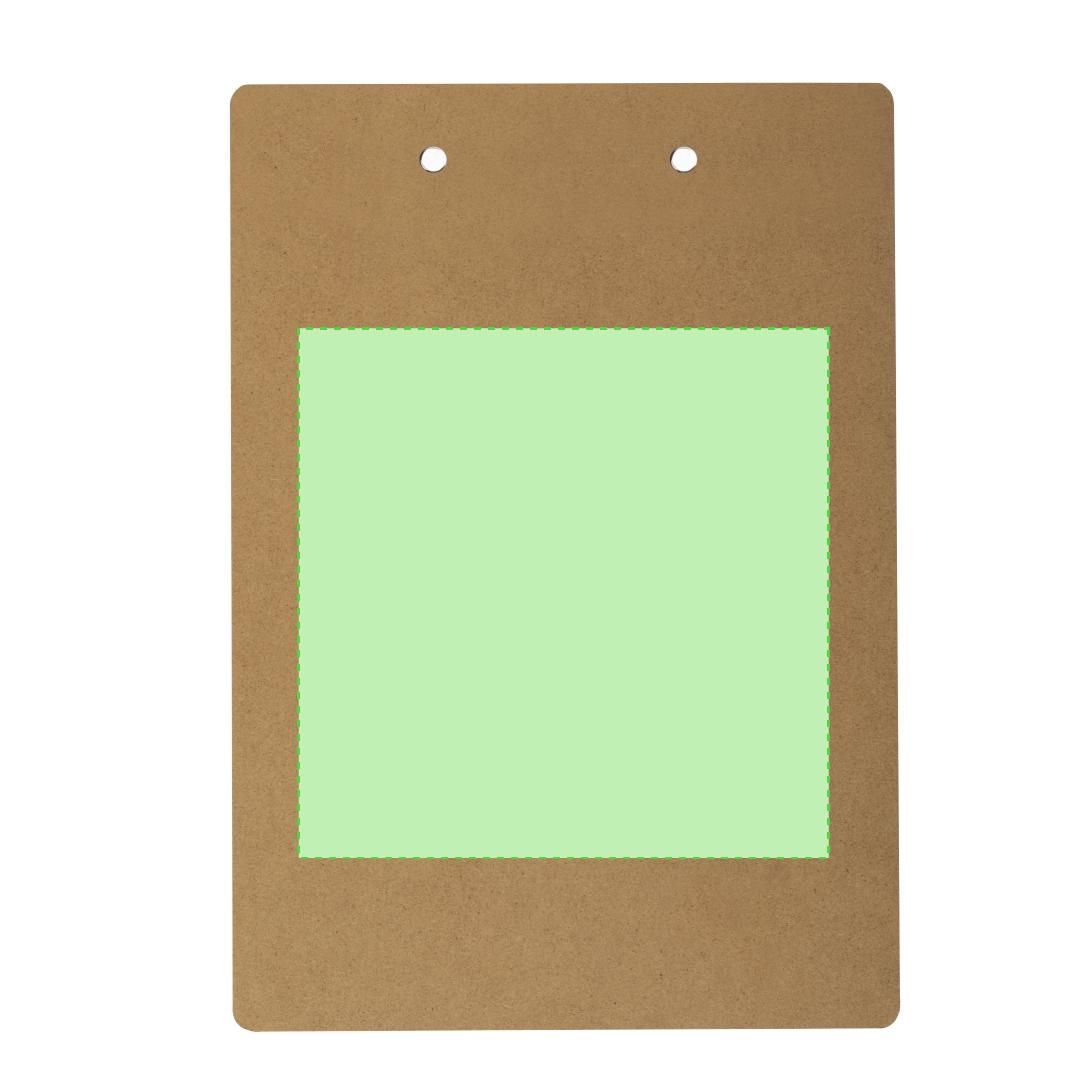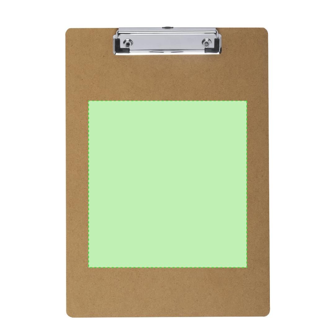 Clásico organizador en MDF tamaño A4. Con resistente pinza para documentación, con recubrimiento en las esquinas para no dañar los documentos.