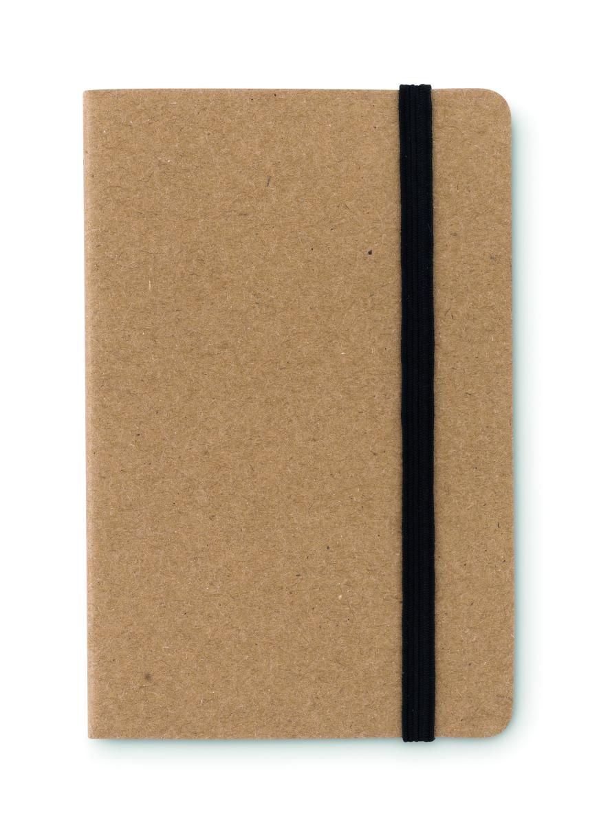 Tarjetero de papel kraft. Blocs de notas adhesivas medianas de papel reciclado amarillo y 5 marcadores de página de colores surtidos. Correa con cierre elástico.