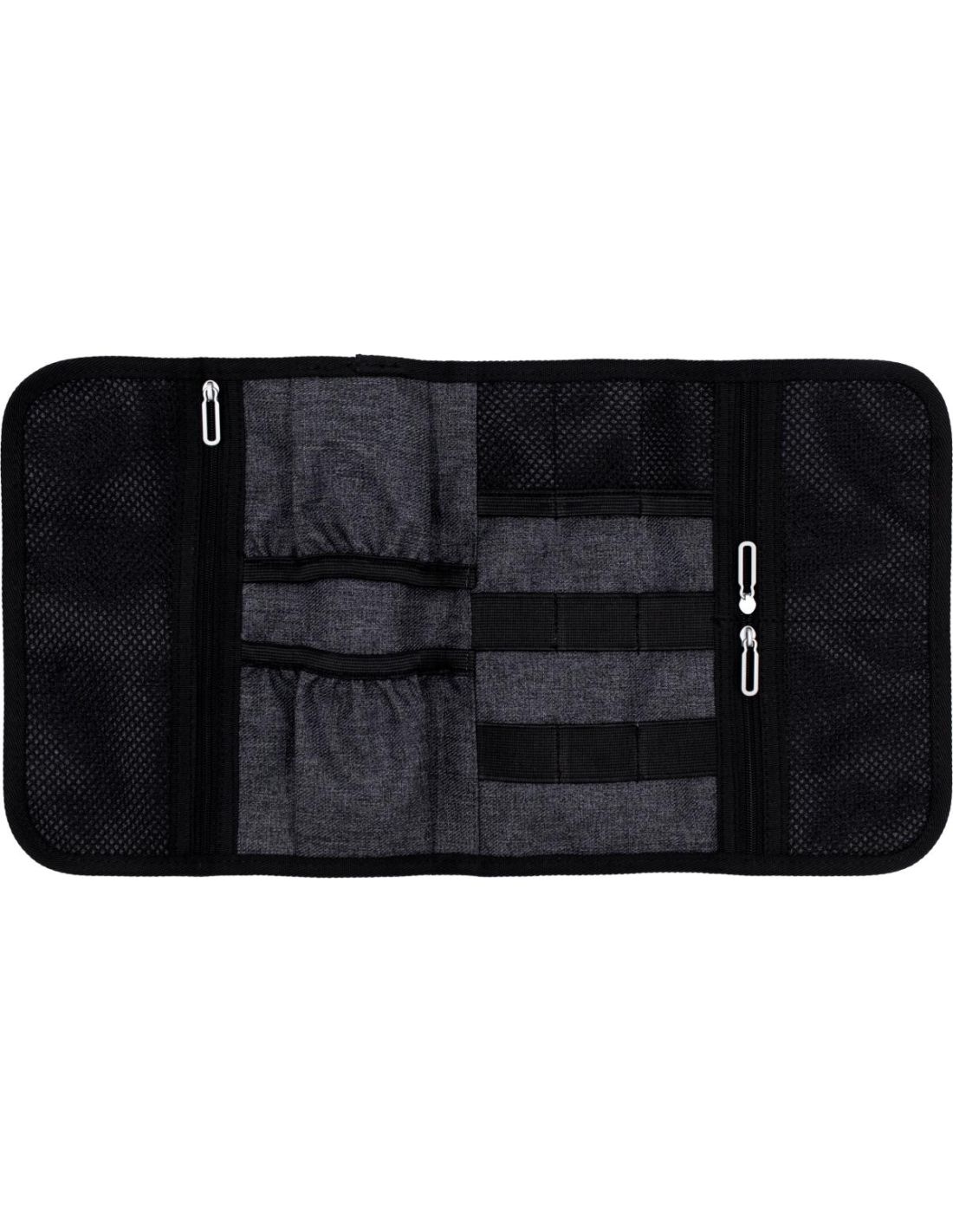 El organizador Folio es el compañero perfecto para mantener organizados tus dispositivos digitales y elementos tecnológicos esenciales de uso diario, a la vez que te permite guardar tus accesorios de viaje. Fabricado con poliéster 600D de primera calidad que repele el agua y las manchas, su diseño compacto hace que sea fácil de guardar en tu bolso, mochila o maleta. Su práctico diseño incluye 6 presillas elásticas para cables y herramientas, 3 bolsillos de malla para artículos pequeños como USB o tarjetas SD y 2 bolsillos abiertos para cargadores o adaptadores de corriente, lo que ofrece una gran flexibilidad y un almacenamiento interior ajustable.