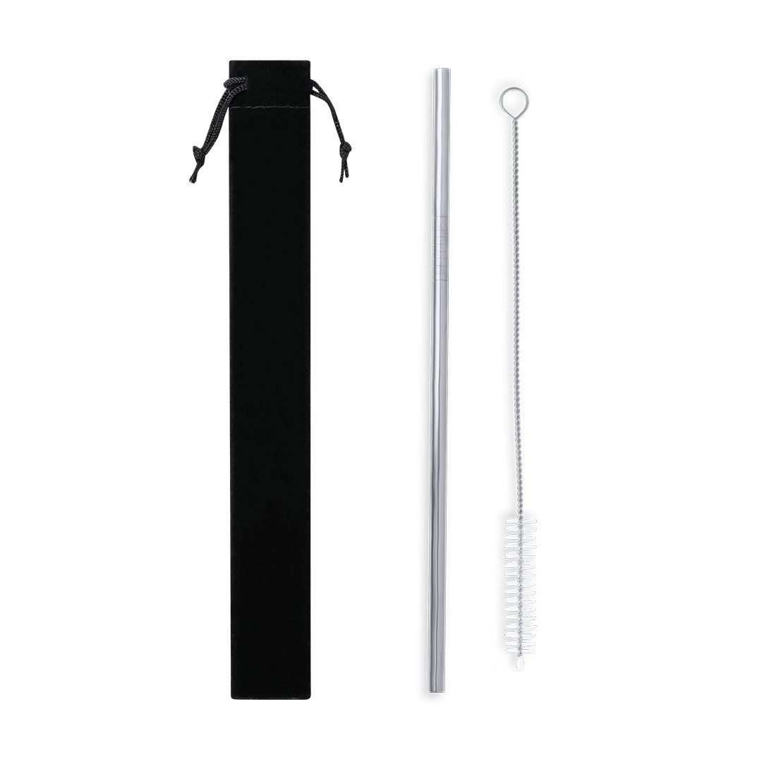 Juego de pajita reutilizable en acero inox. Con accesorio cepillo limpiador incluido y presentada en estuche de suave microfibra con cordones...