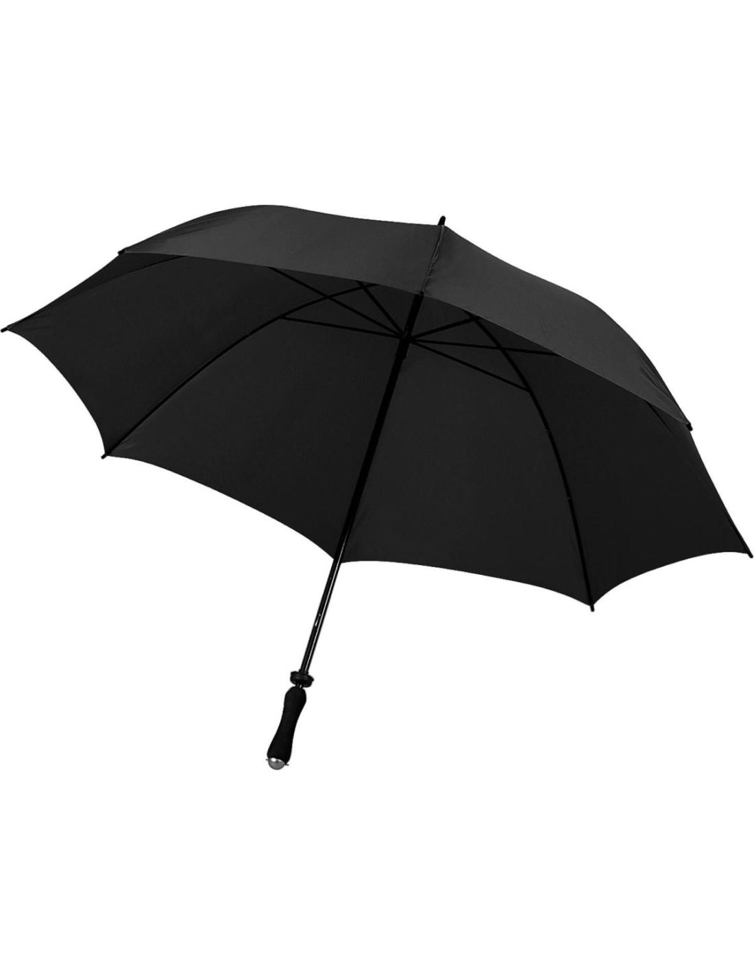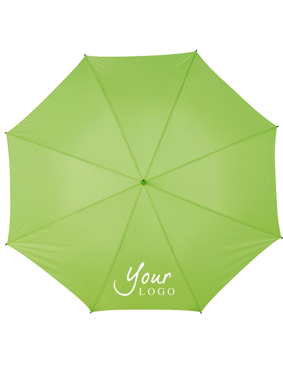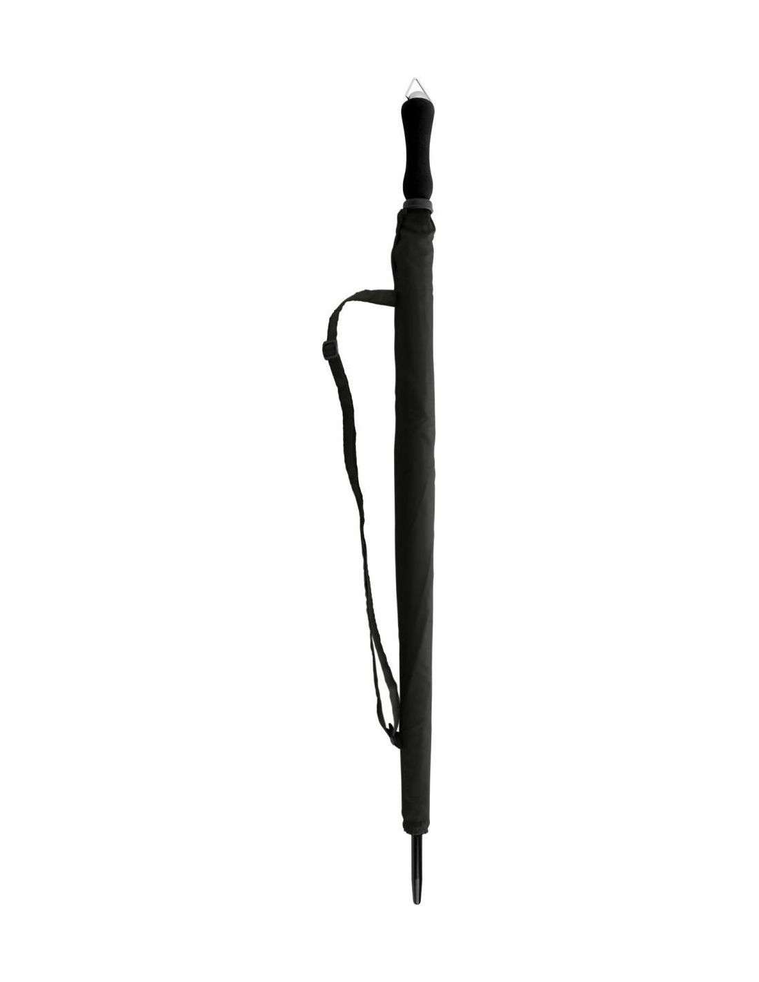 Paraguas manual de 8 paneles de poliéster (210 T). Puño recto de EVA, caña y varillas de metal y cierre con velcro. Con funda y asa bandolera a juego.
