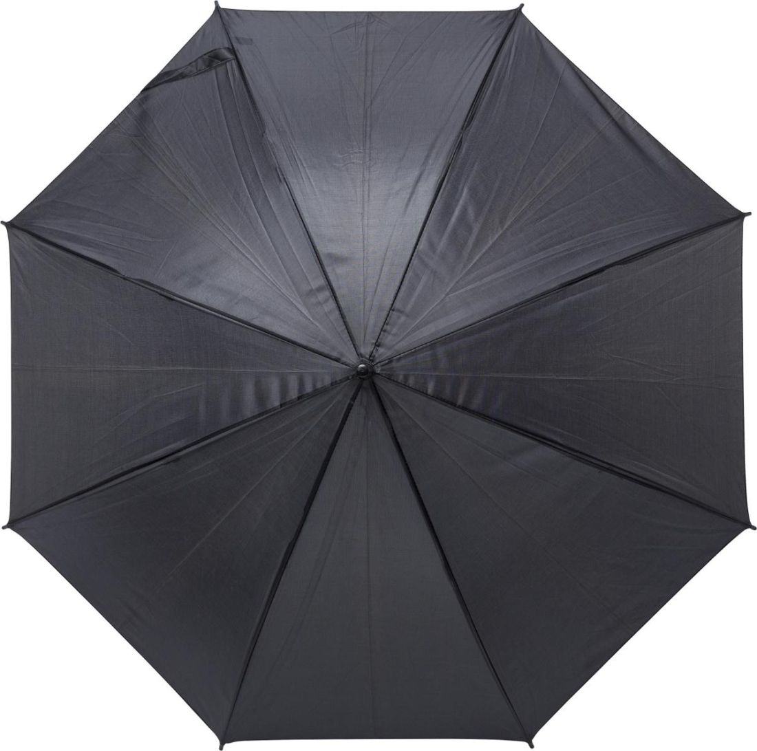 Paraguas automático de 8 paneles de poliéster (170 T). Eje de metal, varillas de fibra de vidrio y mango de EVA.
