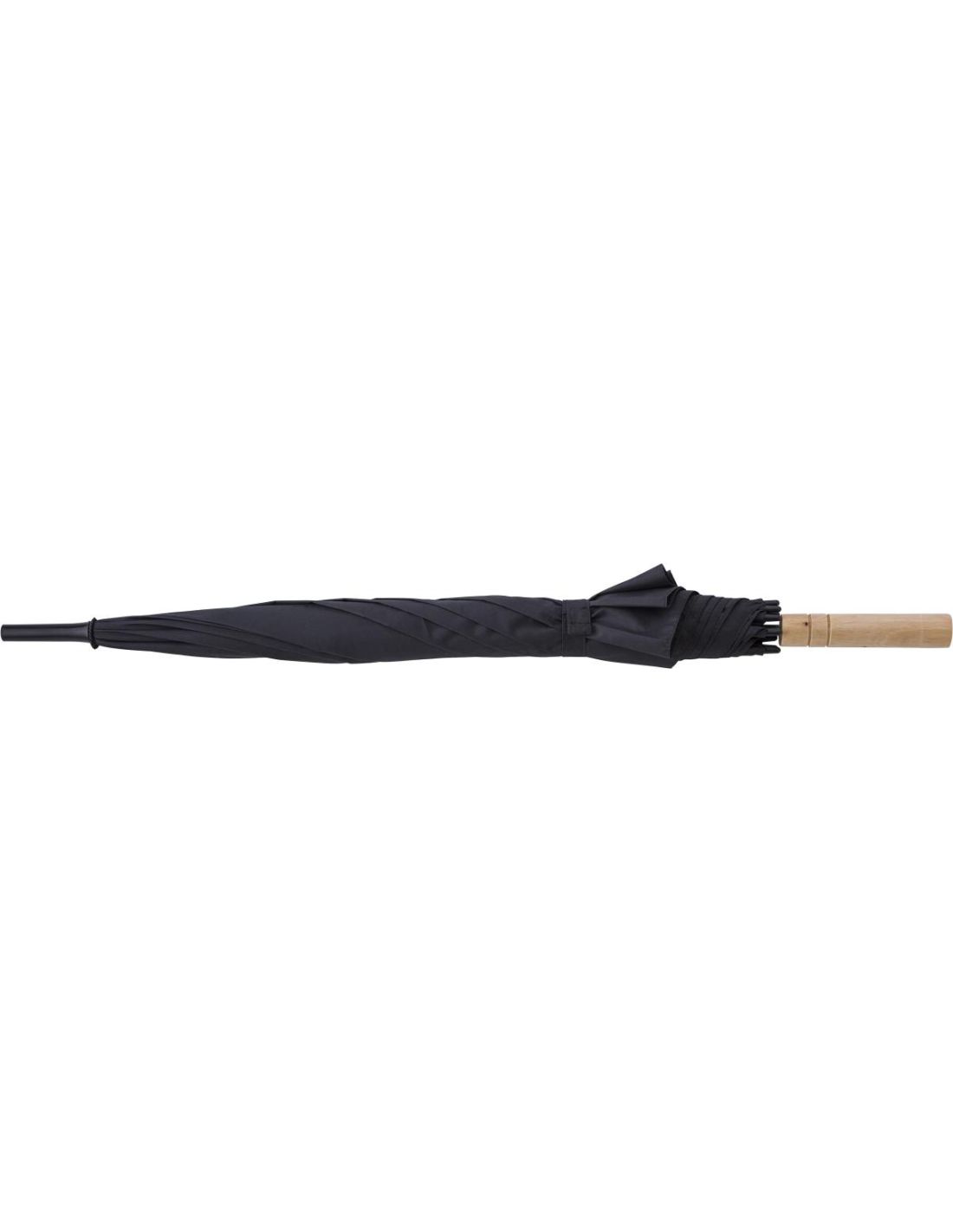 Paraguas automático de 8 paneles de rPET y pongee (190 T). Mango de bambú y estructura de metal.