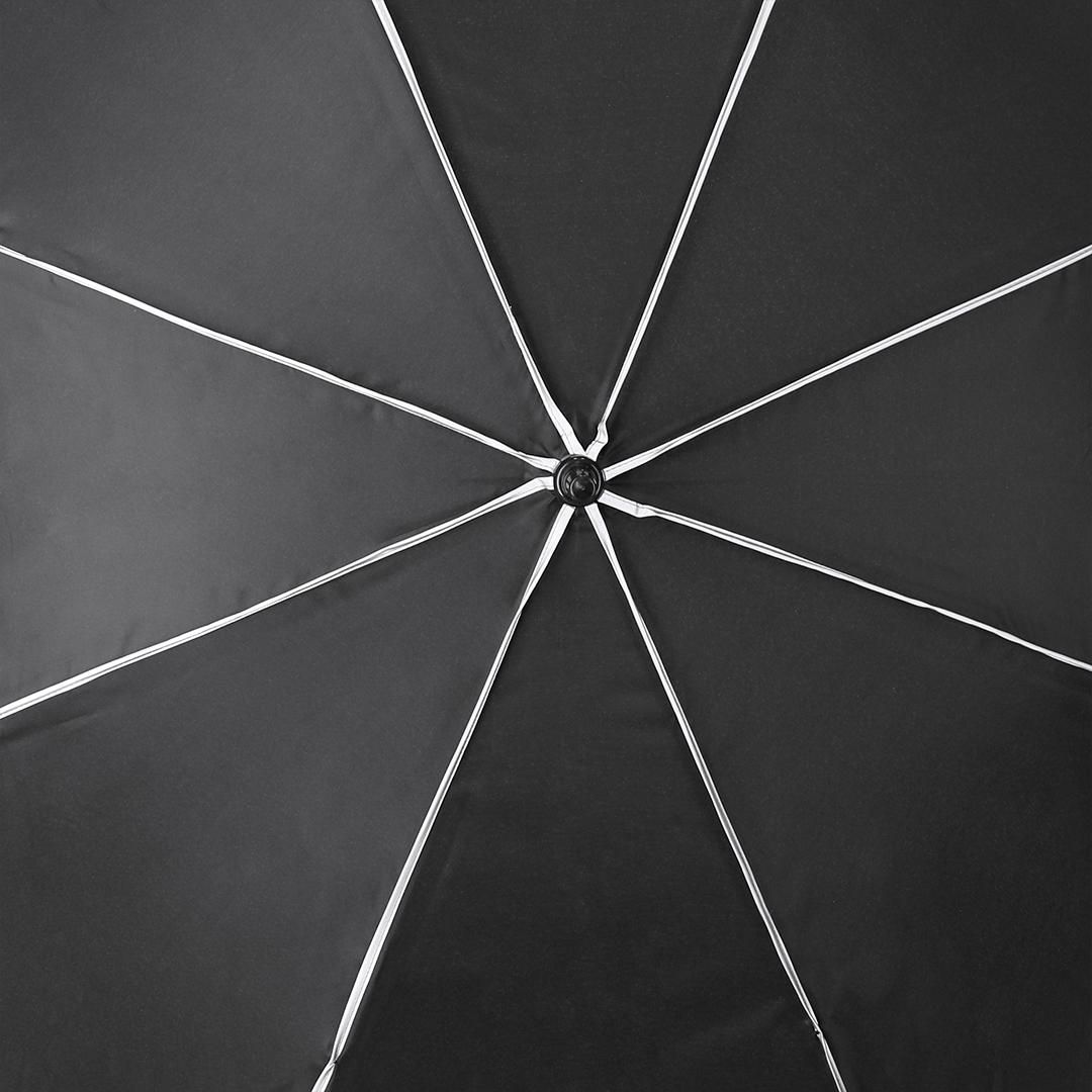 Paraguas antiviento fabricado en RPET 190T de 8 paneles, con elegante diseño en color negro con ribetes reflectantes. De 120cm de diámetro, con...