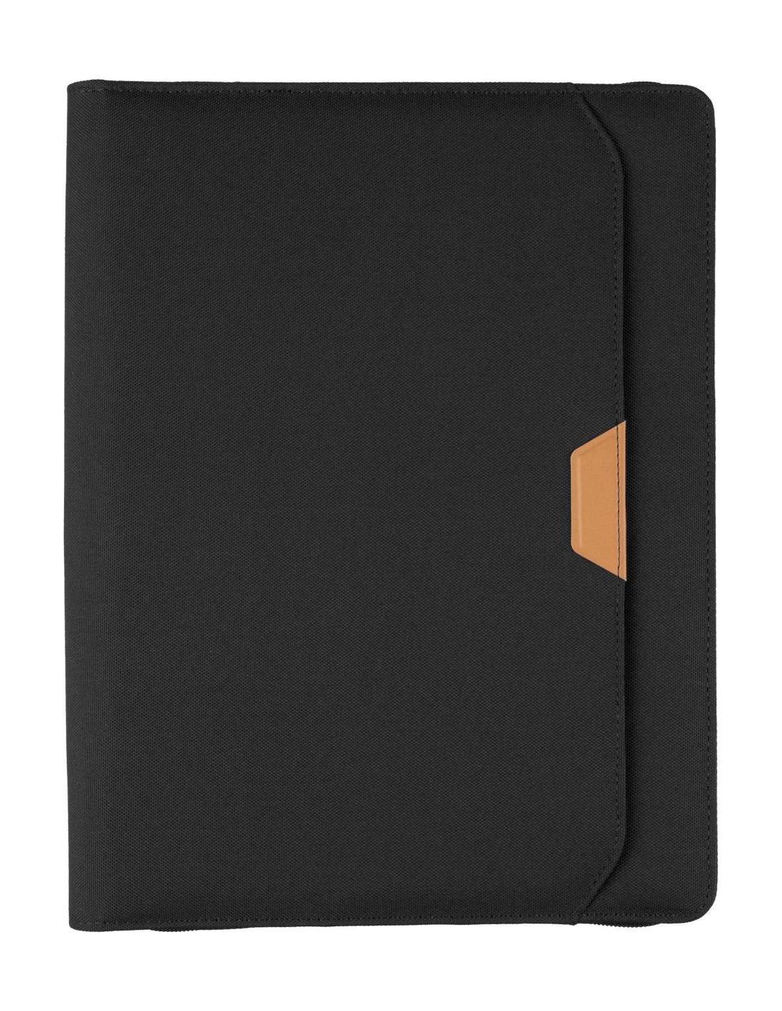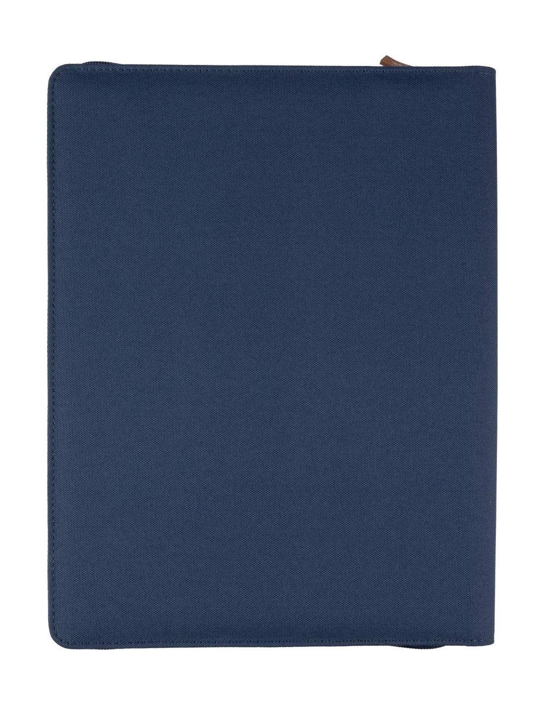 Carpeta de congresos de rPet (aprox. A4) con detalle de PU y cremallera. Incluye un cuaderno con 20 páginas a rayas (70 g/m²), múltiples compartime…